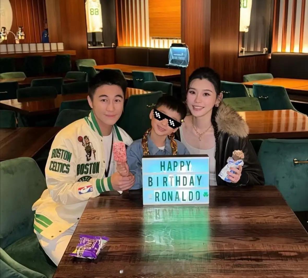 奚梦瑶晒温馨合照为儿子庆生,6岁何广燊身高抢镜,模样像何猷君