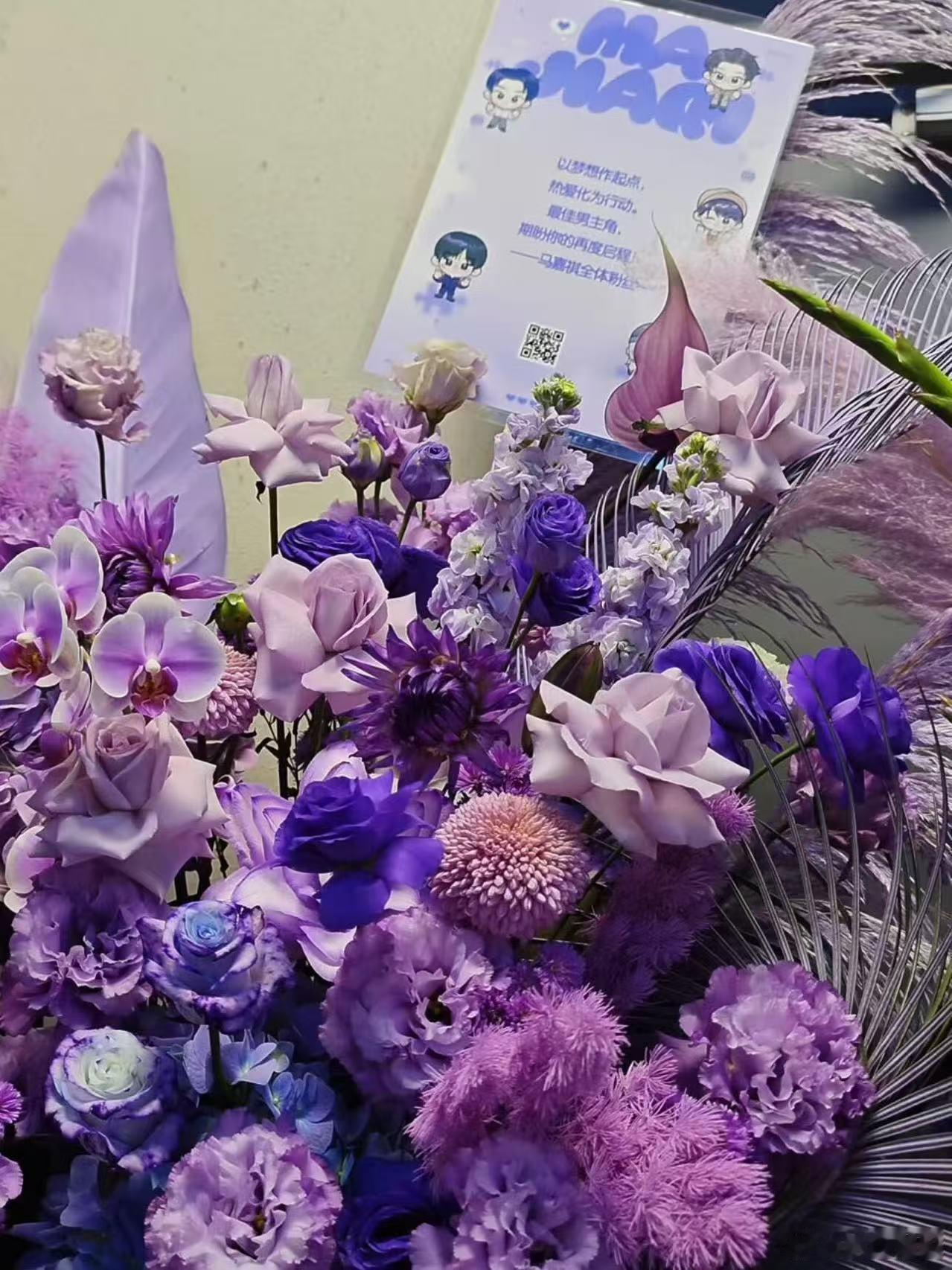 马嘉祺毕业大戏粉丝花篮 看到马嘉祺的毕业大戏,粉丝们的花篮应援真是太感动!祝福他在大戏中完美演绎,未来的每一步都充满光彩,继续向山海前行!