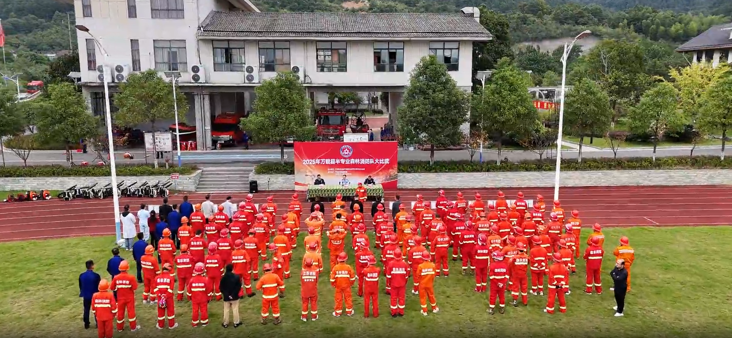 10月22日,万载县组织开展全县乡镇半专业森林消防队大比武活动,17支代表队85名队员参赛,旨在全面检验队伍技能水平,提升火灾扑救与应急处置能力。