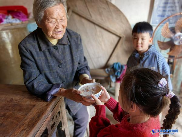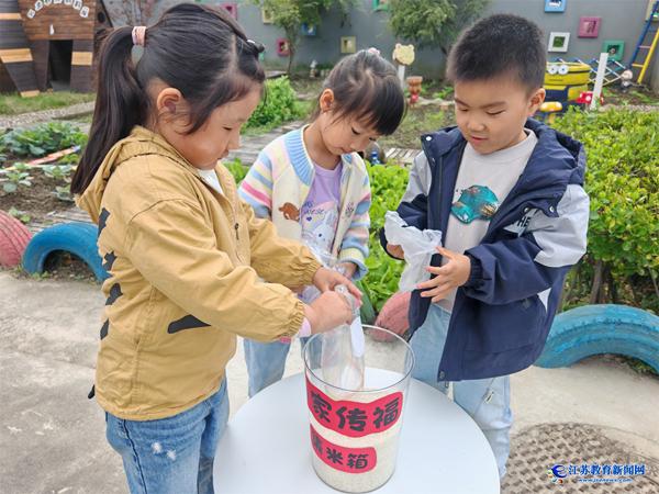 “知重阳”课堂上,教师结合幼儿认知特点,通过故事会、民俗互动等形式,讲解重阳传说与登高、赏菊、吃重阳糕等习俗,解锁“感恩敬老”的节日密码;“亲重阳”课堂的亲子打卡活动中,孩子们设计敬老计划表,用擦桌、捶腿等行动帮助老人;“暖重阳”课堂延伸至社区,幼儿代表携“百家米”熬制的福寿粥和手工贺卡,走访孤寡老人,送祝福、献爱心。