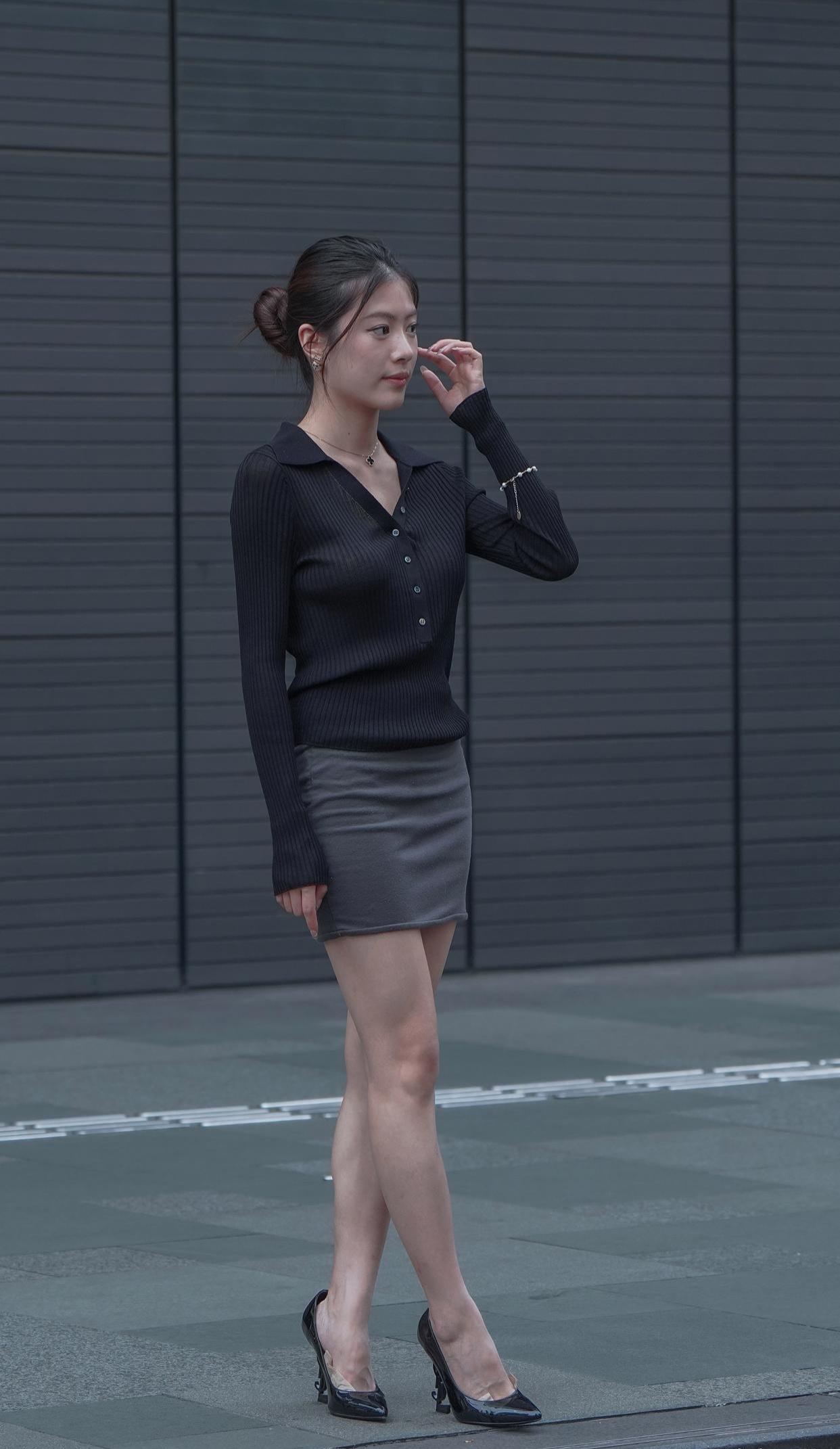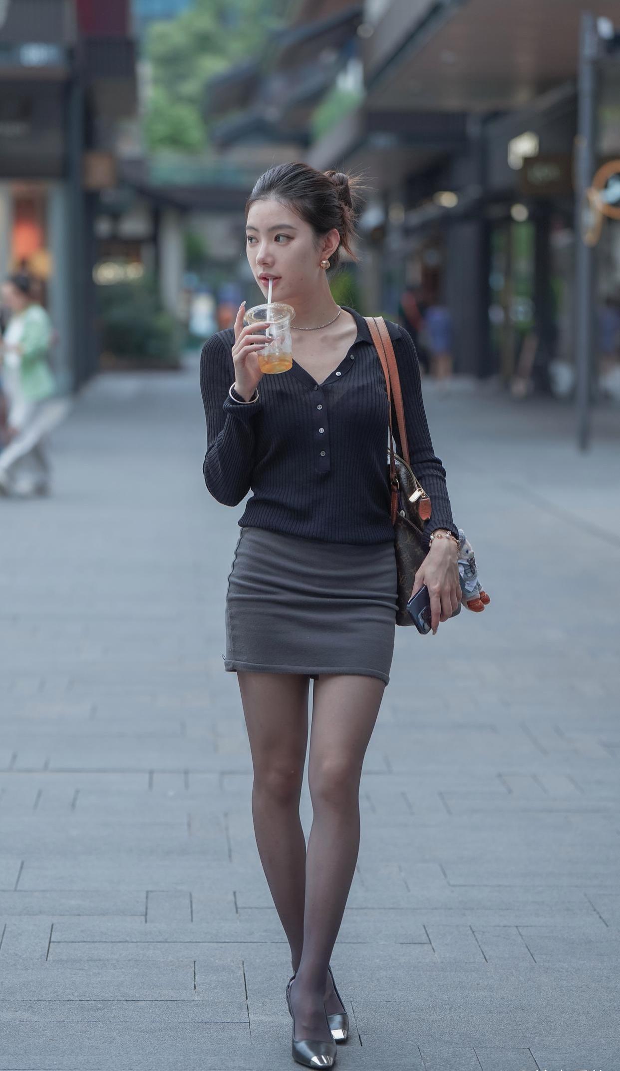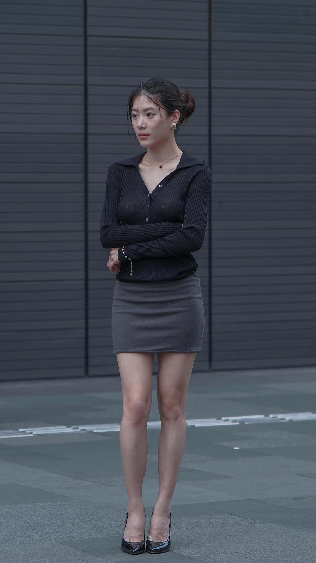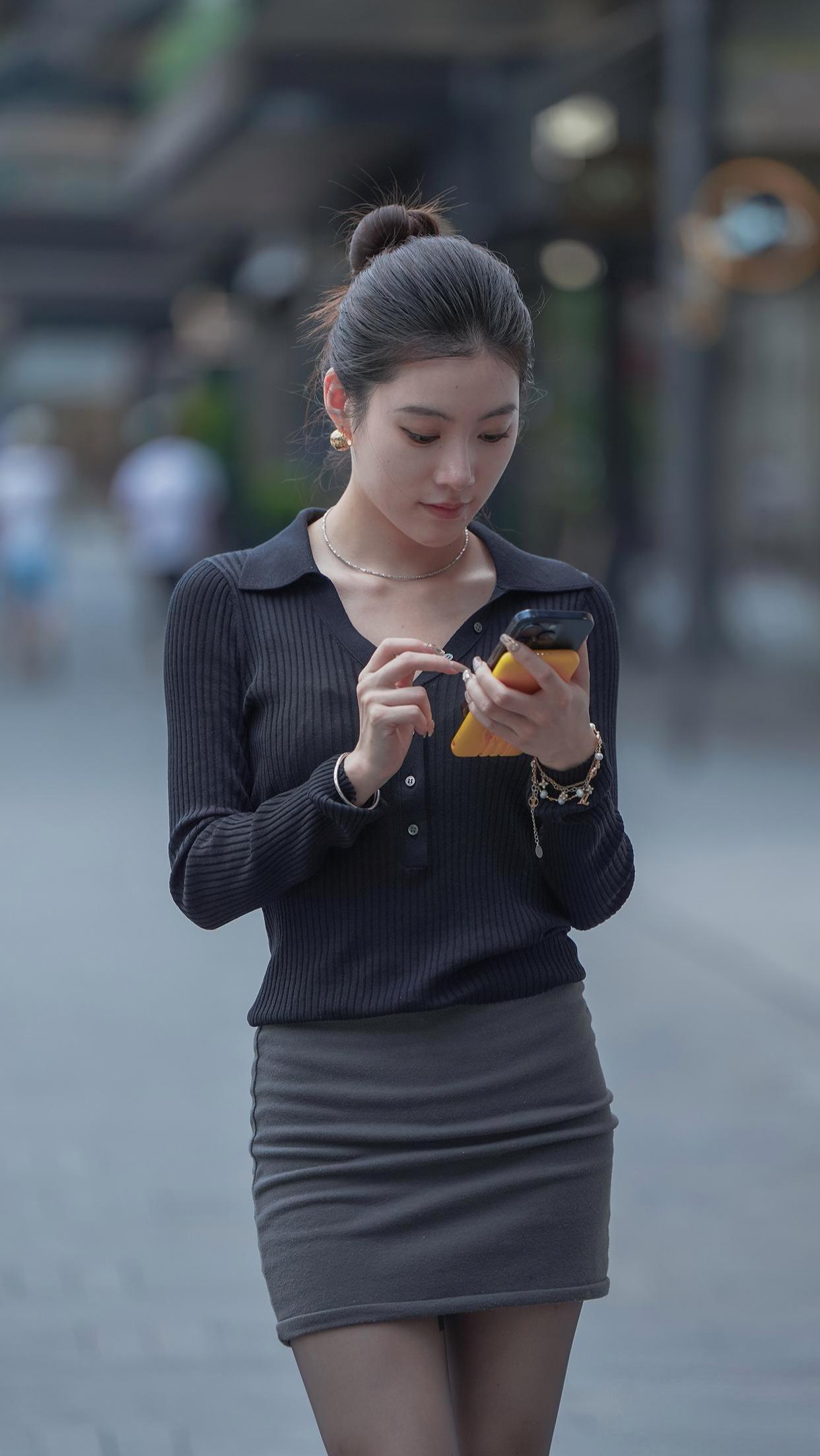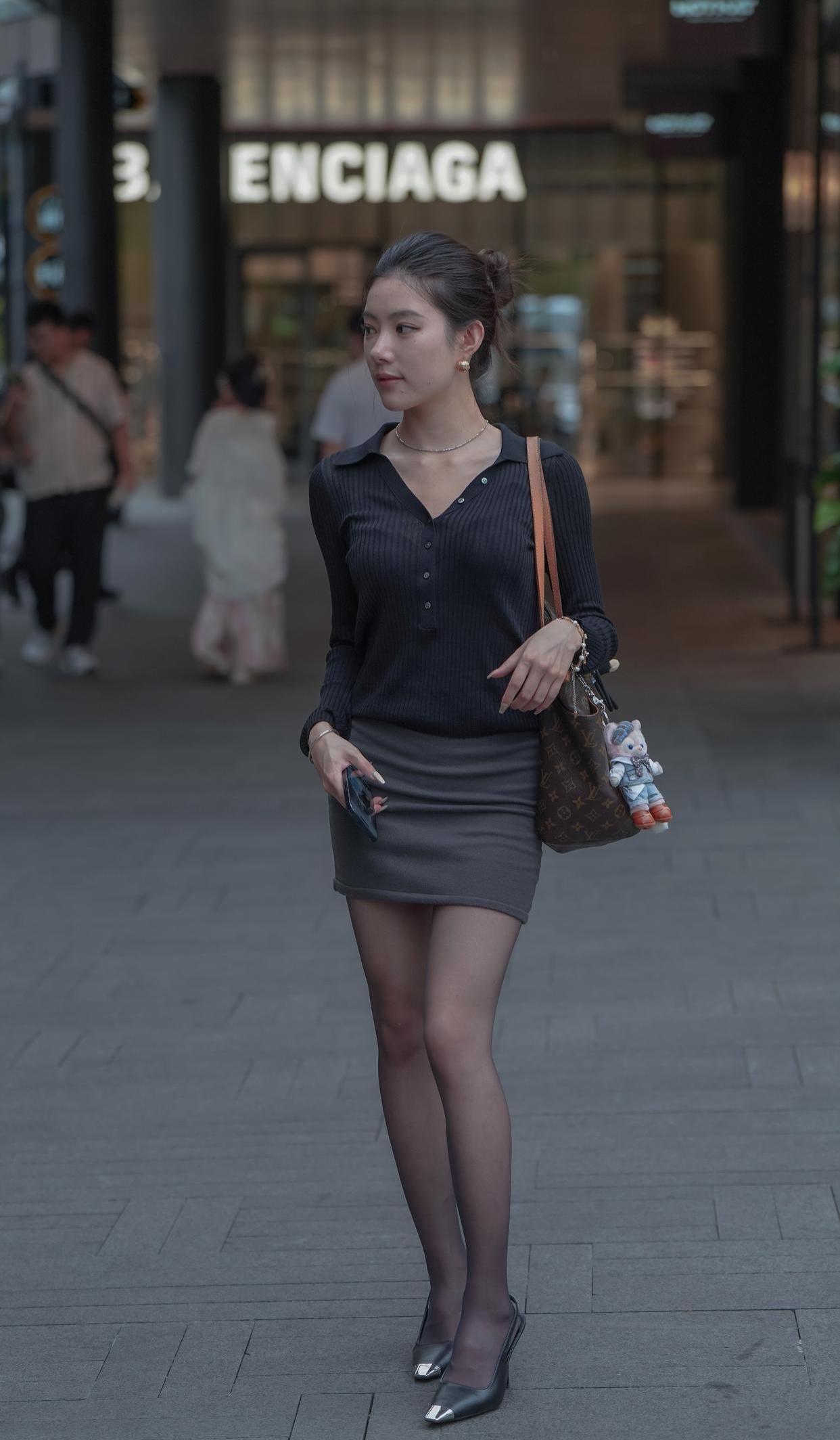 在都市街头,一条优雅黑裙总能成为焦点。就像我曾遇到的一位姑娘,身着黑丝裙搭配白色
