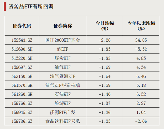 与科技主题ETF大涨所对应的是,主投煤炭、石油、能源等资源品资产的ETF今天出现回调。前一日领涨的煤炭ETF(515220)今日跌幅居ETF市场前列。