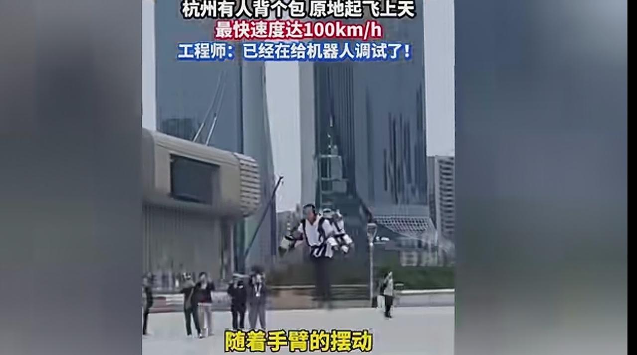 我被震惊到了:可穿戴式飞行器已经落地了。 浙江杭州街头惊现"平地起飞"。 一男子穿着“机器服“演示平地低空飞行。 据说可以飞越山川湖泊。 哪天上市啊?我想买一套。 像鸟一样飞行,是人类的梦想,如今要实现了。
