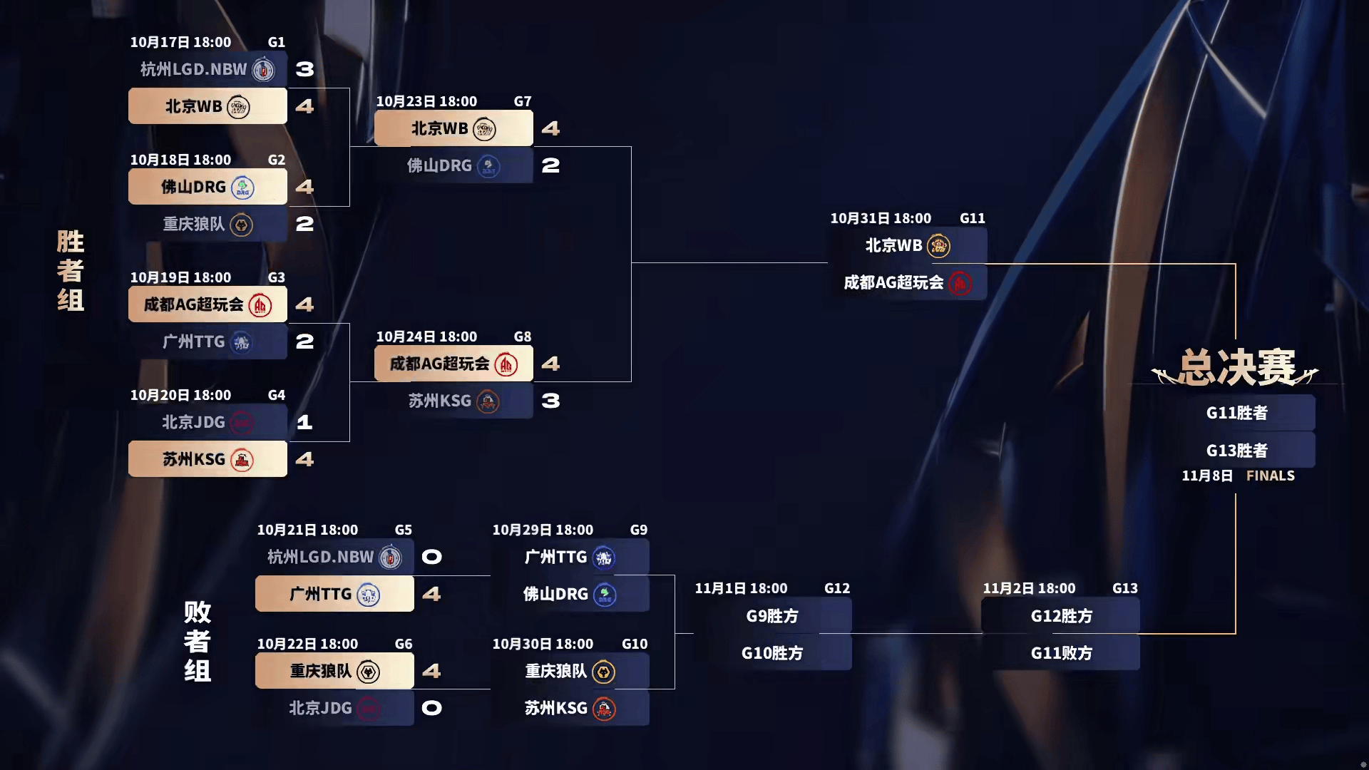 虎扑10月25日讯[今日赛果]AG/WB会师胜决,狼队败者组生死战对阵KSG