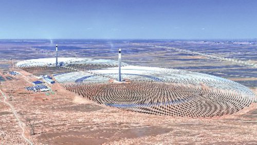 三峡恒基能脉瓜州“光热+”项目建设现场。该项目是全球首个“双塔一机”光热储能电站,于2025年10月进入全系统试运行。甘肃省发展改革委/供图