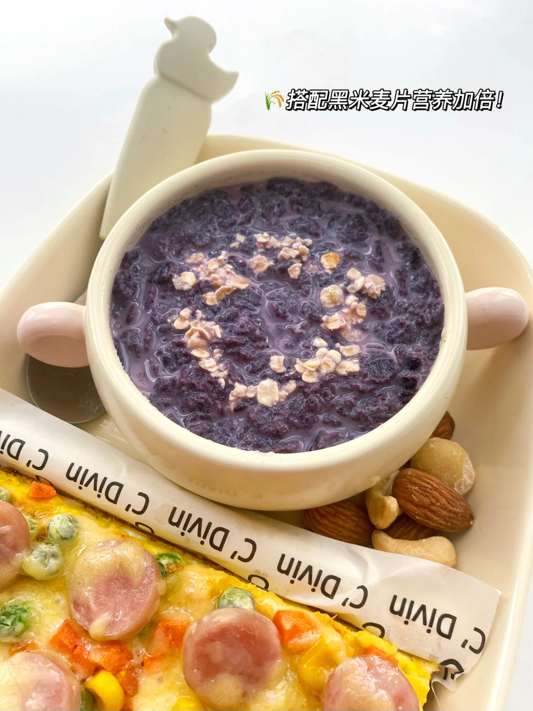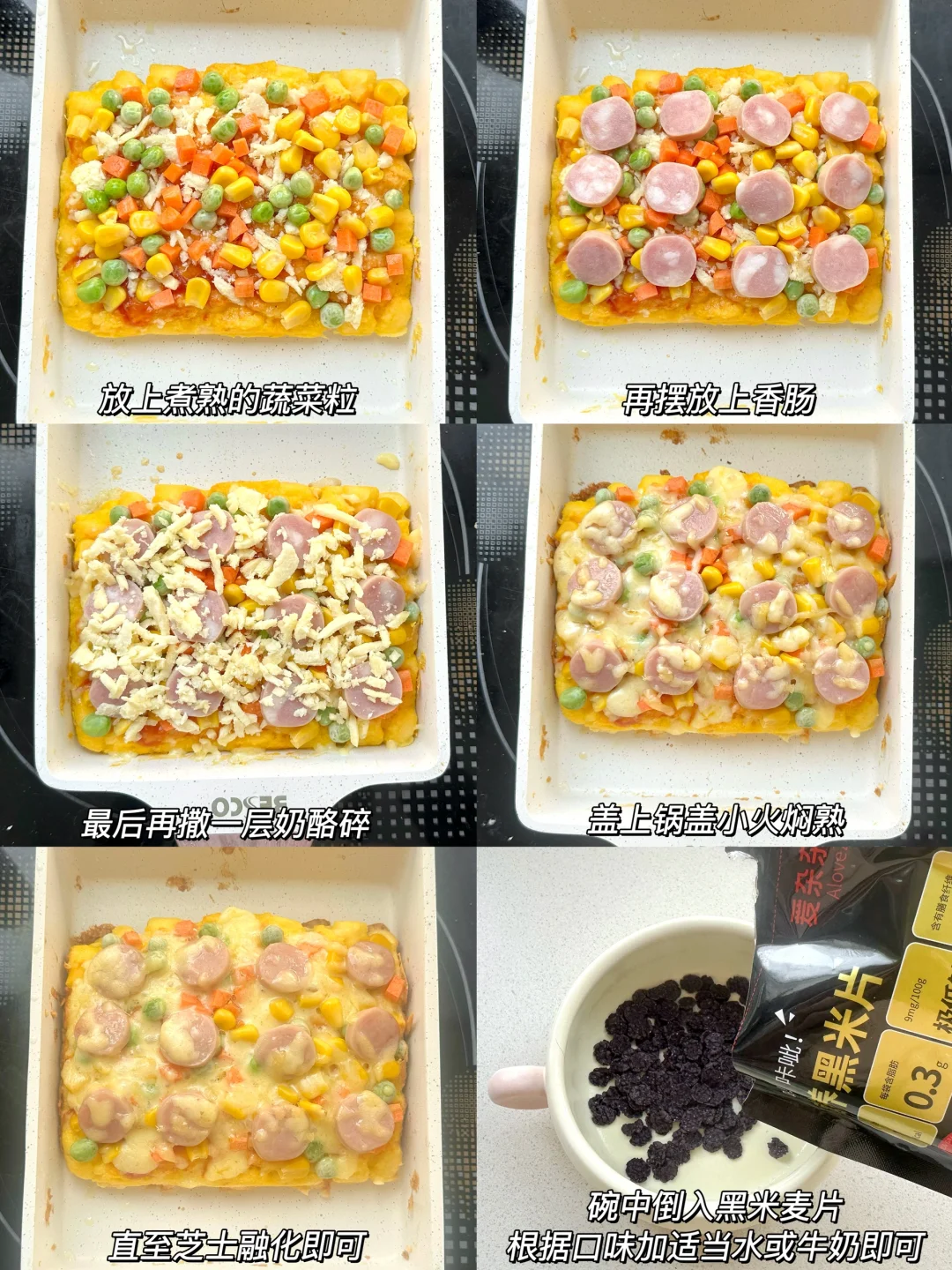 【今日小朋友早餐】 🍕香肠蔬菜馒头披萨 🌾黑米麦片奶 ~ ☀️好久没来更新早餐啦,寒假几乎天天都在睡懒觉💤。 🍕今天小朋友想吃披萨,家里正好有馒头,直接加了鸡蛋做成披萨饼皮,更加的松软哦!而且无需烤箱,一个平底锅就可以搞定,披萨上面放上蔬菜和香肠,撒上芝士碎,小火焖熟就可以啦!简单快手,大家一定要试试。 🌾还搭配了一晚黑米片牛奶,比起普通的麦片更营养健康哦,黑米片配料只有黑米粉 ,口感酥脆酥脆,平时可以搭牛奶吃早餐也很方便噢!