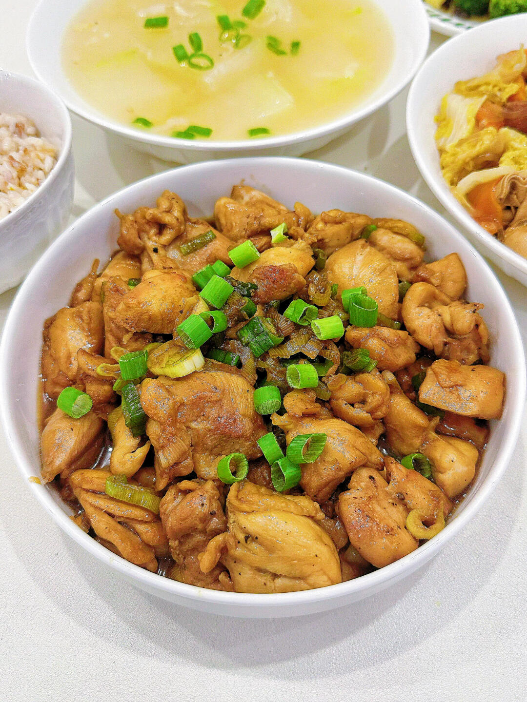 🌈今天吃: 🍗葱烧鸡腿 🥬白菜猪肉炖粉条 🍲虾皮冬瓜汤 🥦西兰花炒香菇 ~ 🌈图片教程往后翻哦! 🍗今天的鸡腿依旧是小朋友也可以放心吃的无抗鸡腿肉哦!