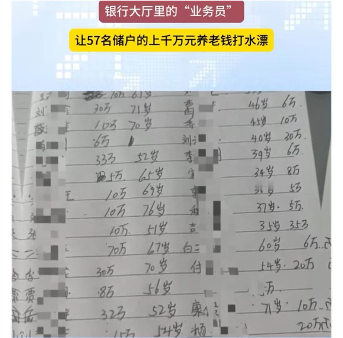 【大爷大妈养老钱被骗银行大厅,谁来负责?山西57名储户“投资”背后的连环问号】 你能想象么?在自己天天光顾的银行大厅里,居然能遇上骗子!山西57位储户就这样被三个假冒银行“业务员”忽悠,亲眼看到这些“工作人员”用银行APP帮忙操作,结果把自己的养老钱——累计上千万——统统转到了某商业公司,买了高风险理财。多数储户都是老年人,事情发生在2019到2020年之间,大家直到理财到期后发现本金和利息都拿不出来,才如梦初醒,这几人压根不是银行员工! 被骗的储户一致认为,事情发生在银行营业厅,而且那些假业务员完全没有受到银行任何监管,银行难辞其咎,应该承担连带责任。但这么多年过去了,钱却还没追回来,储户报案后依然陷入漫长等待。 这个案例让人忍不住思考:银行大厅究竟该不该为储户的资金安全兜底?银行要不要对进出自己馆子的“假员工”甄别?法律上一般怎么管?事实上,如果银行未尽到正常管理和提示义务,确实有可能被判定存在疏忽,需要承担部分甚至全部赔偿责任。但具体怎么判,还得看证据、看司法解释。 给大家提个醒,哪怕身处银行这样的场所也一定要多留心,不熟悉的“业务员”,即使号称银行职工,也要核实身份,不要懈怠。养老钱事关一生积蓄,任何投资都要自己多做功课,莫让辛苦钱打了水漂。