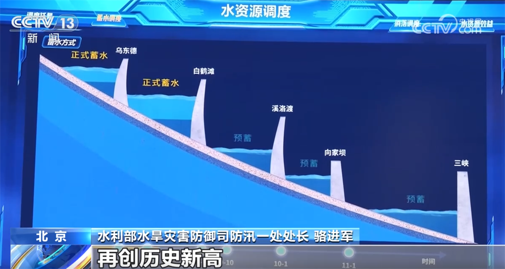 水利部水旱灾害防御司防汛一处处长骆进军称:“纳入联合调度的长江流域58座控制性水库死水位以上有效蓄水量再次突破1000亿立方米大关,再创历史新高,为今冬明春枯水期提供了坚实的水源保障。”