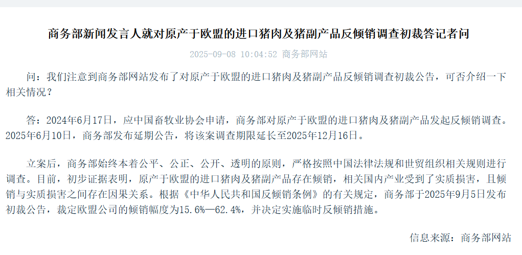 再比如,中国对欧盟猪肉、乳制品发起反倾销 、反补贴调查等等。