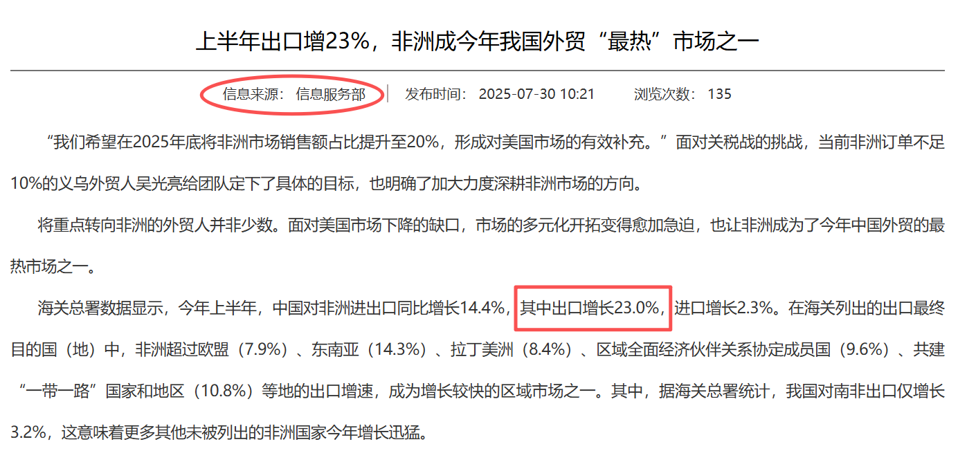 对东盟进出口3.67万亿元,增长9.6%。对非洲出口增长更是惊人,上半年对非洲出口同比增长 23。