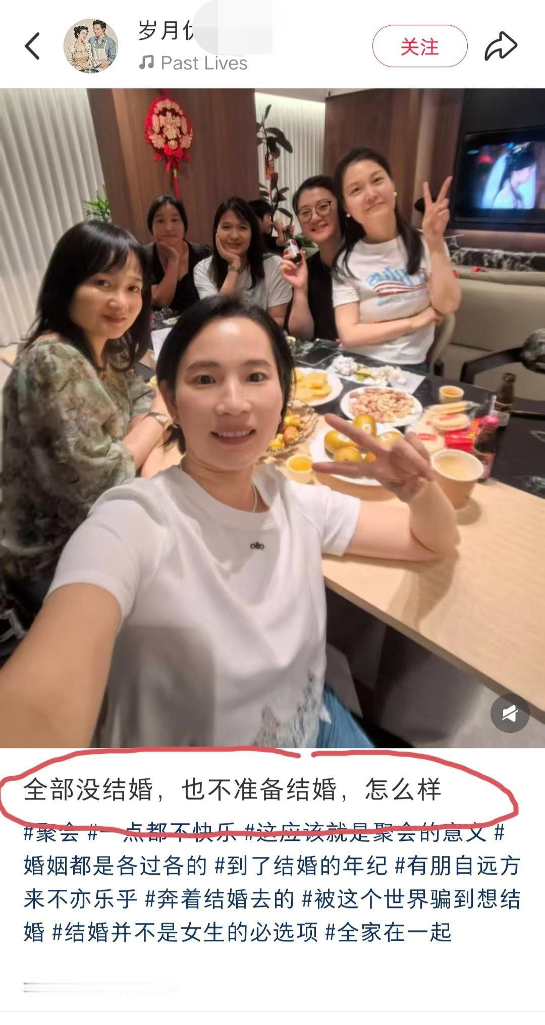 一桌六个少妇,全部没结婚,也不准备结婚?都是如花似玉的年龄,为什么会有这样偏激的想法呢?现在大龄剩女都开始抱团了吗,她们可能在畅想未来等她们老了,就找一个地方一起终老呢! 网友在评论区道:千万不要结婚,实际上年纪越大,除了你们自己以外,没人会会关心你们结婚不结婚,亲戚朋友大多都是敷衍的客套。 也有网友表示:有没有可能别人都在私下努力找,只有你当真了! 评论区的网友们,就这个话题,你们都是持什么样的观点?