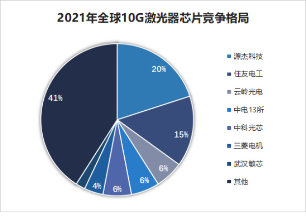 在电信市场,源杰科技客户覆盖中兴通讯、诺基亚和中国移动、中国联通等主流设备商和运营商。2021年,公司10G激光器芯片全球市占率达20%,超过住友电工、三菱电机位列第一,展现出强劲的国际竞争力。