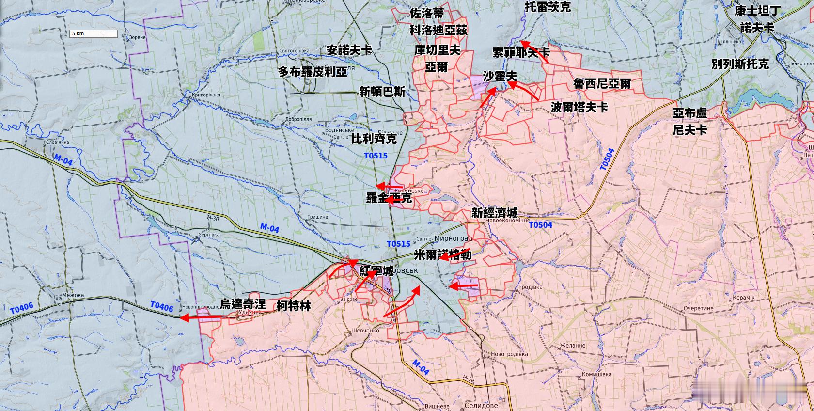 更新紅軍城一線態勢俄羅斯武裝部隊完全控制羅金西克,紅軍城-米爾諾格勒通往北面的T