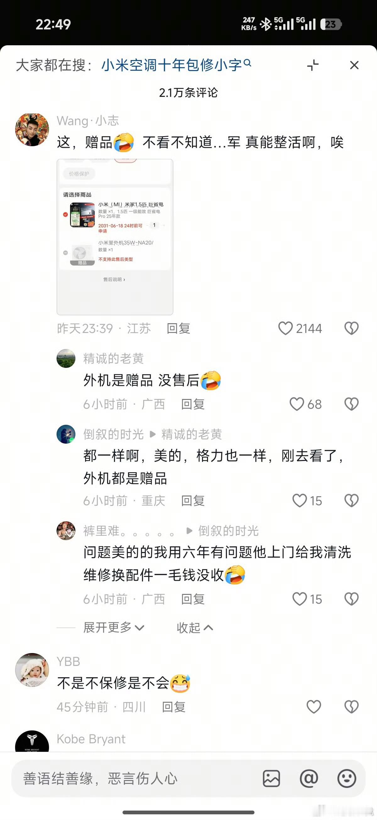 开始带小米家电保修的节奏了?这些人没买过车,总不会空调都没买过吧?[允悲]