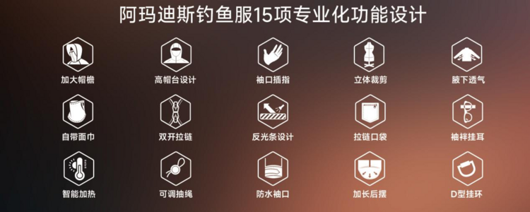 阿玛迪斯2025秋冬钓鱼服新品系列,针对秋冬垂钓时低温、大风、潮湿、紫外线等复杂环境,将九大功能科技进行升级优化,让专业渗透到每一处穿着体验中。