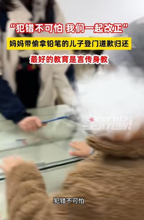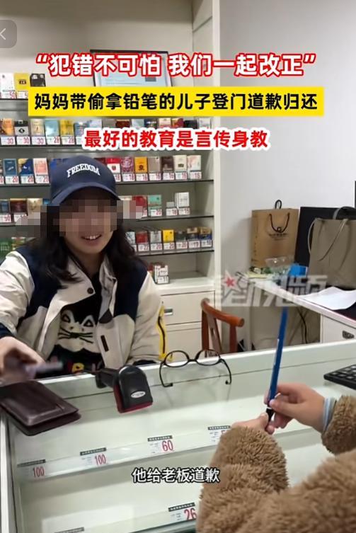 “这才是大智慧!”10月22日,山东威海,一孩子在文具店偷走一根铅笔,回家后被妈妈发现,妈妈没有打骂孩子,而是直接带着孩子来到小卖部归还铅笔,并要求孩子跟老板道歉,网友:最好的教育就是言传身教! 相信很多人小时候都有偷拿家长钱买东西的经历,小孩子的是非观念还没完全建立,看到想要的东西只想着怎么得到,犯错是不可避免的,这个时候家长的教育方式就很重要。 一孩子在文具店买文具时看上一支铅笔,妈妈觉得家里铅笔很多,就没给他买,谁知,孩子竟然偷偷将铅笔揣兜里带回了家。 回家后,妈妈发现孩子偷拿了铅笔,没有选择打骂他,而是带着孩子又回到了文具店,让他拿着铅笔自己跟文具店老板承认错误并道歉归还。 文具老板娘看到母子二人进来还有点懵,听到男孩诚恳的道歉后才知道是怎么回事,老板娘微笑着原谅了男孩,还将这支铅笔作为知错能改的奖励送给了他。 不少网友怒赞这位妈妈的做法,让孩子明白自己做错的同时,还教会了他承担责任,最好的教育就是言传身教,小孩子犯错不可避免,一味的打骂可能还会激发逆反心理,犯错并不可怕,还有改正的机会,这位妈妈颇有大智慧! 信息来源:《“犯错并不可怕,我们一起改正”,妈妈带偷拿铅笔的儿子登门道歉归还》星视频