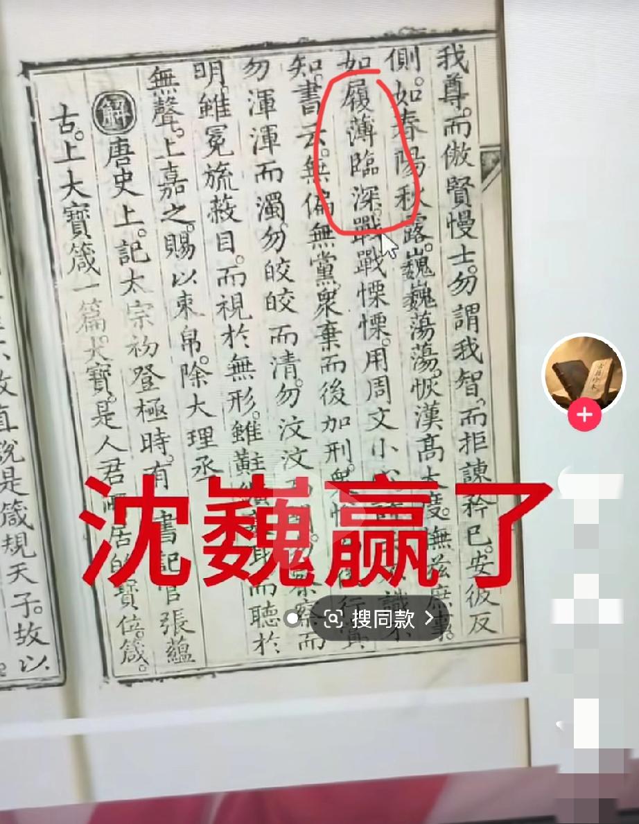 近日,流浪大师沈巍指出陆俨少艺术馆里面的错别字,“履薄临深”还是“履薄临探”? 稍后,陆俨少艺术院:能查到的目前只有“探”。 而好事网友也从相关古籍里面考证过了,应该是“履薄临深”,这样看来,沈巍是对的,陆俨少艺术院是错的。 沈巍而且也解释的比较浅显易懂:这个词的构成是一个动词加一个名词再一个动词加一个名词,怎么可能后面是两个动词呢! 网友吐槽:沈巍现象再次诠释了什么叫"大师在流浪,小丑在庙堂"的真正含义!