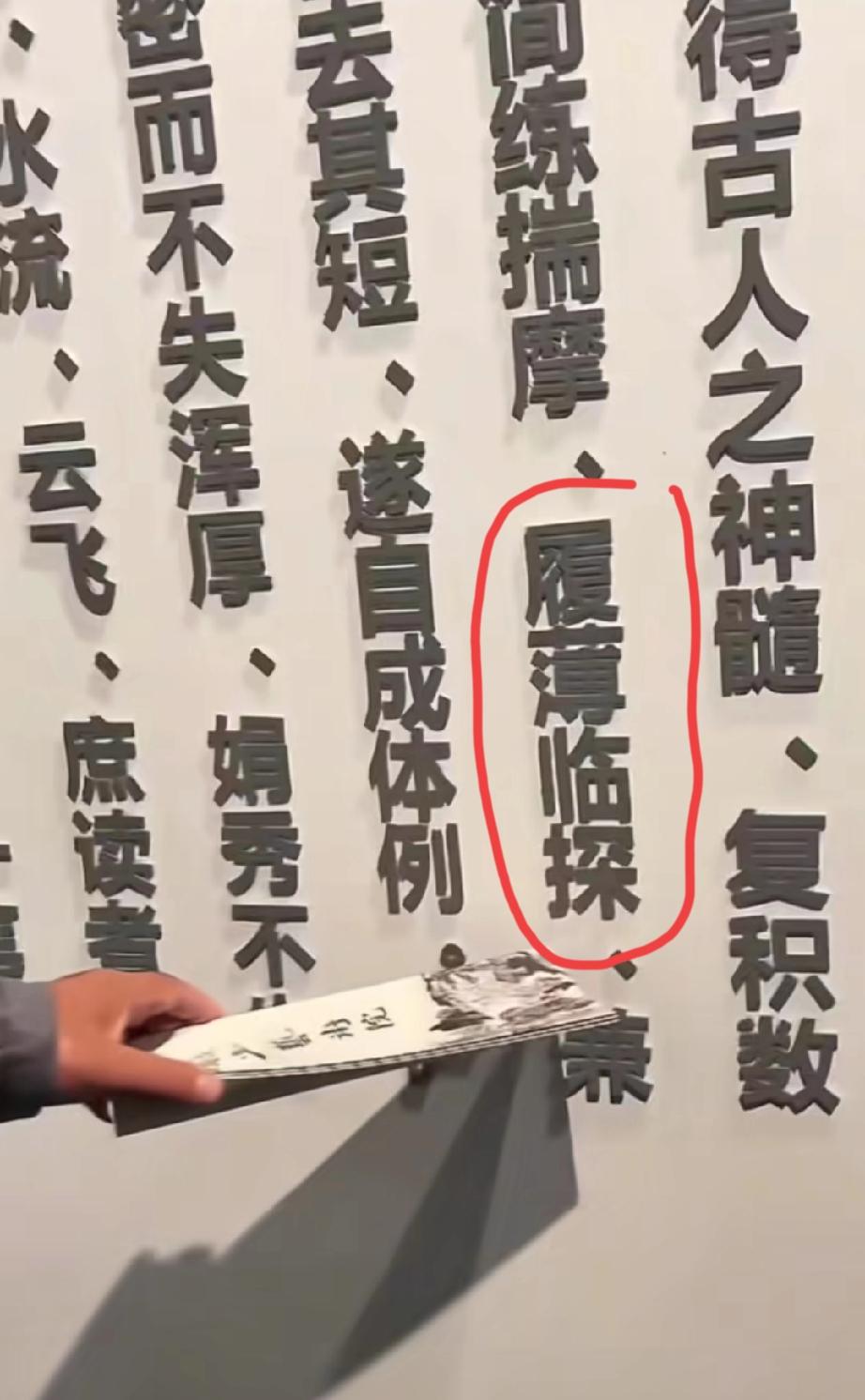 近日,流浪大师沈巍指出陆俨少艺术馆里面的错别字,“履薄临深”还是“履薄临探”?