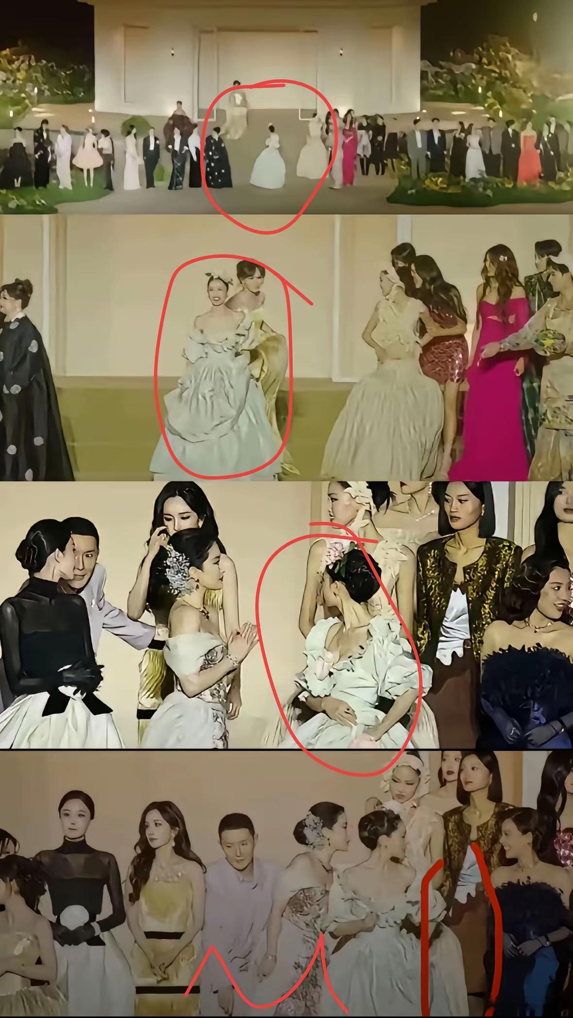 ​甚至于杨幂过来的时候,差点挤不进去,最后刘冲进来合照的时候,往左一步挤到杨幂,往右一步踩到刘亦菲的裙子。