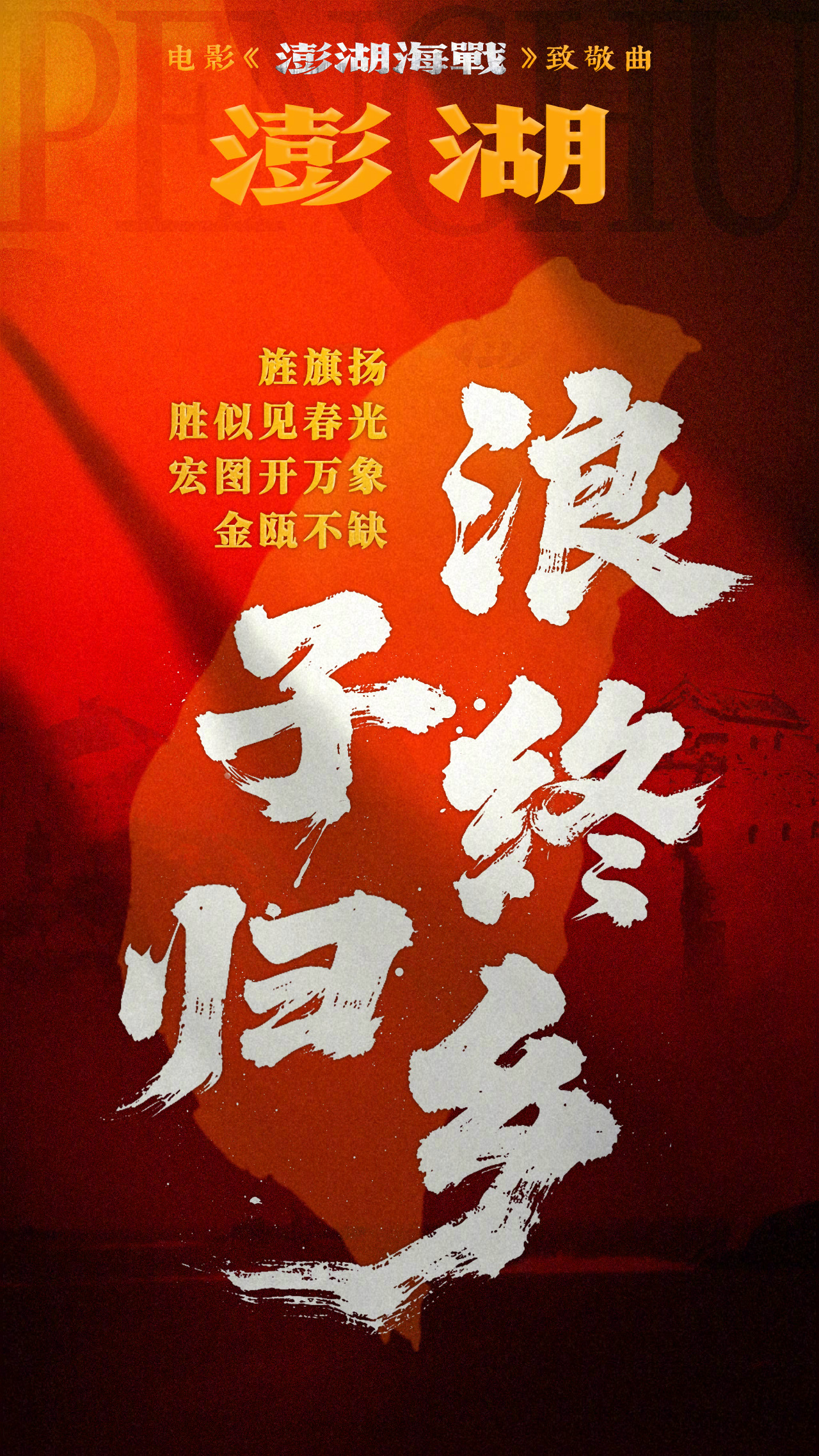 一首歌感受统一台湾的信念感 电影《澎湖海战》发布致敬曲《澎湖》歌词海报,在台湾光复80周年之际传递捍卫祖国统一的坚定信念。电影澎湖海战