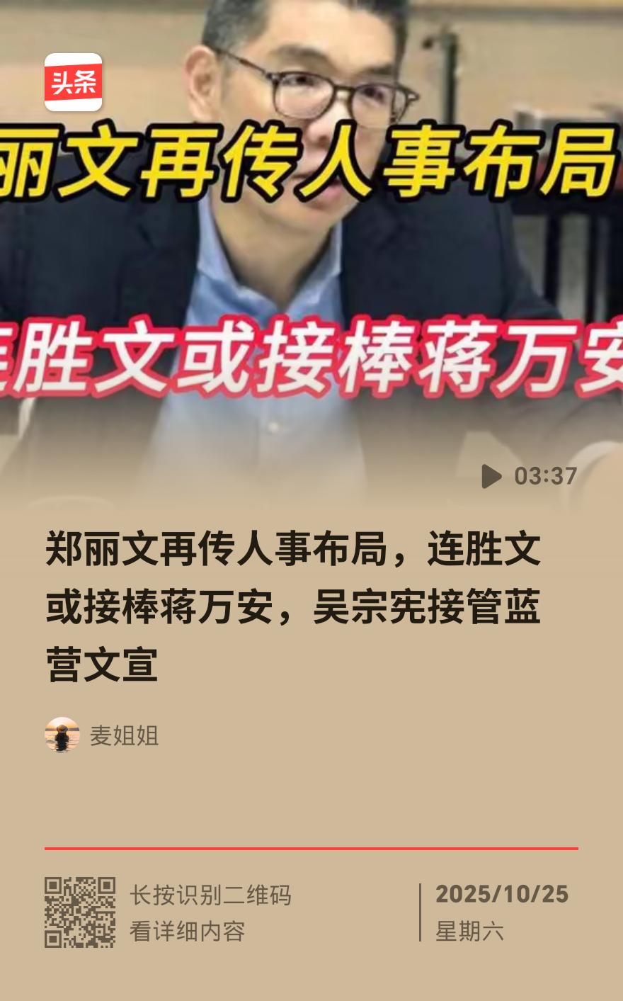 郑丽文再抛人事大招!连马派系成最大赢家,王金平这话藏玄机 国民党主席郑丽文又搞大动作了!第二波人事任命一出炉,直接让连战、马英九两大派系笑开了花,而王金平的表态却透着股不对劲的味儿。 这次新增两位副主席:连战系的张荣恭、马英九的"代言人"萧旭岑全上位,加上之前的李乾龙、季麟连,已经凑齐4位副主席,要知道这位置最多能设7个,后续怕是还有戏。另外,李哲华接了副秘书长兼组发会主委,侯友宜人马吴宗宪管起文传会,简直是把各派系的"好处"都安排得明明白白。 不过有人欢喜有人愁,10月24日王金平受访时,嘴上说没推荐人,却暗戳戳建议郑丽文找个"懂党务、能募款"的帮手,还调侃新班子年龄大,说"家有一老如有一宝"。这话听着像建议,实则更像不满没给自家留位置,活脱脱一副"话里有话"的样子。 郑丽文这波操作,说白了就是给支持她的大佬们"交作业",可党内派系盘根错节,她能不能平衡好各方,后续会不会给王金平派系补位,还得接着看这场"人事大戏"怎么演。郑丽文 你看好郑丽文带领下国民党的发展吗