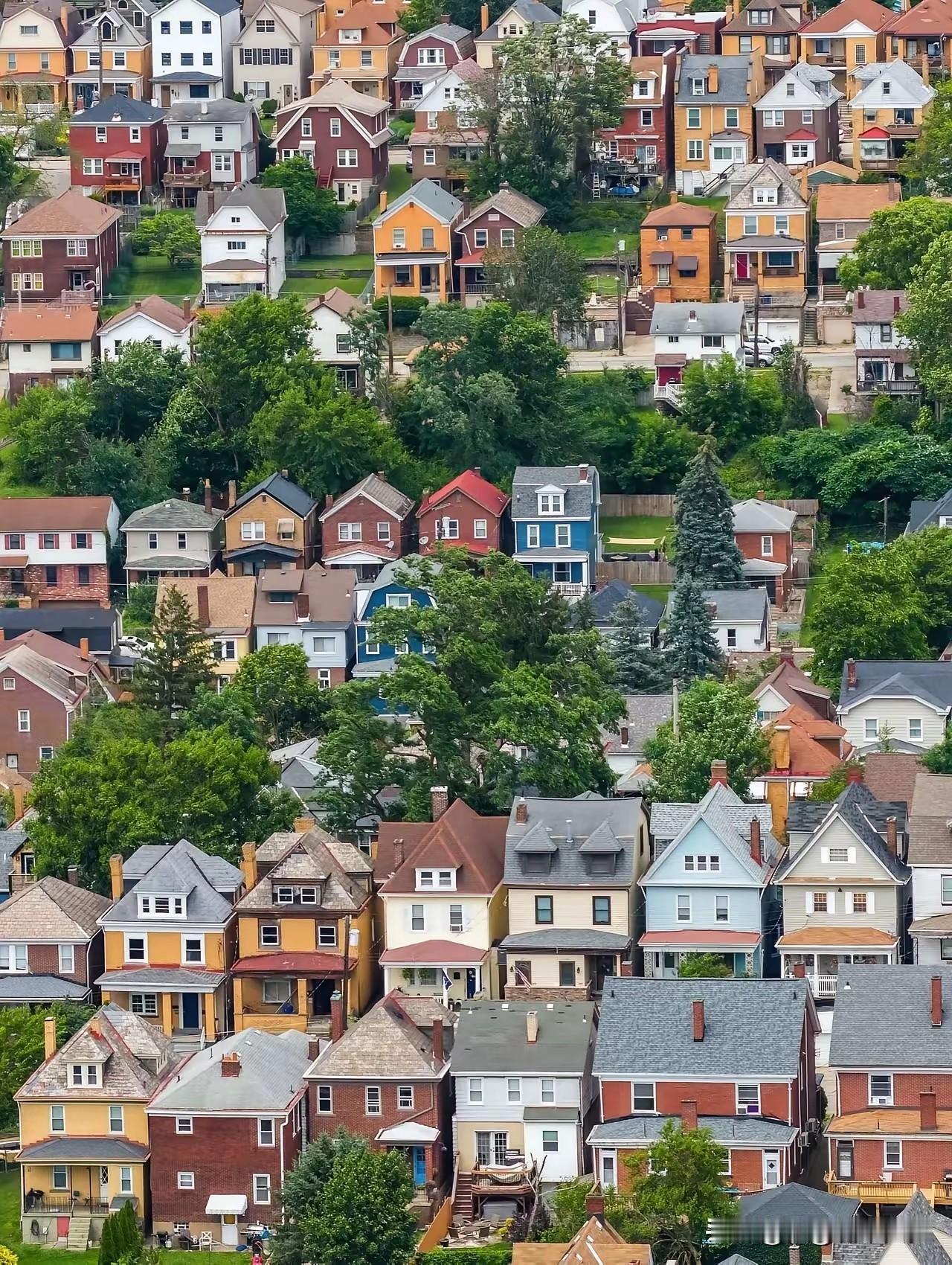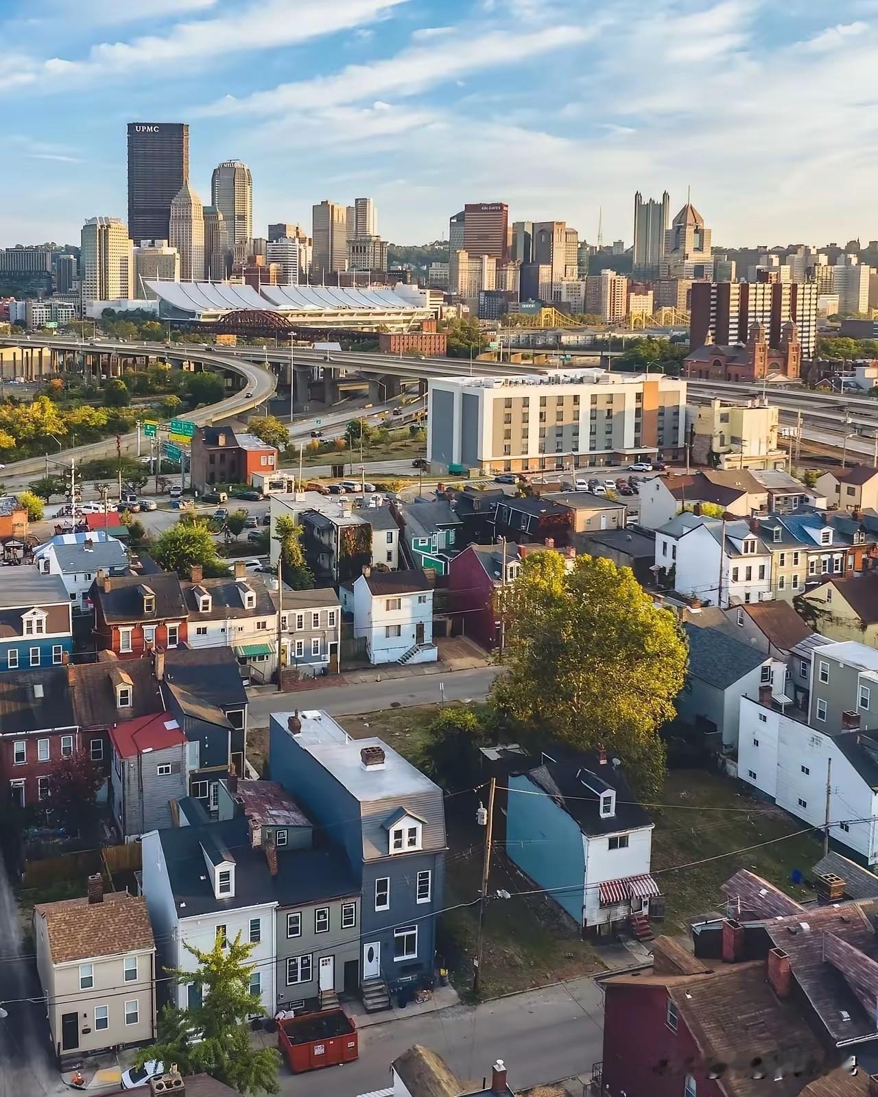 你看看美国是摩天大楼故乡,但是高楼也没这么多,相反我们拼命建高层住宅,以后都是建筑垃圾,拆都不好拆。 匹兹堡城市人家盖这种别墅住的真舒服,剩下的都是公寓,写字楼,很少有高层住宅。 别再盖了,留点资源吧。