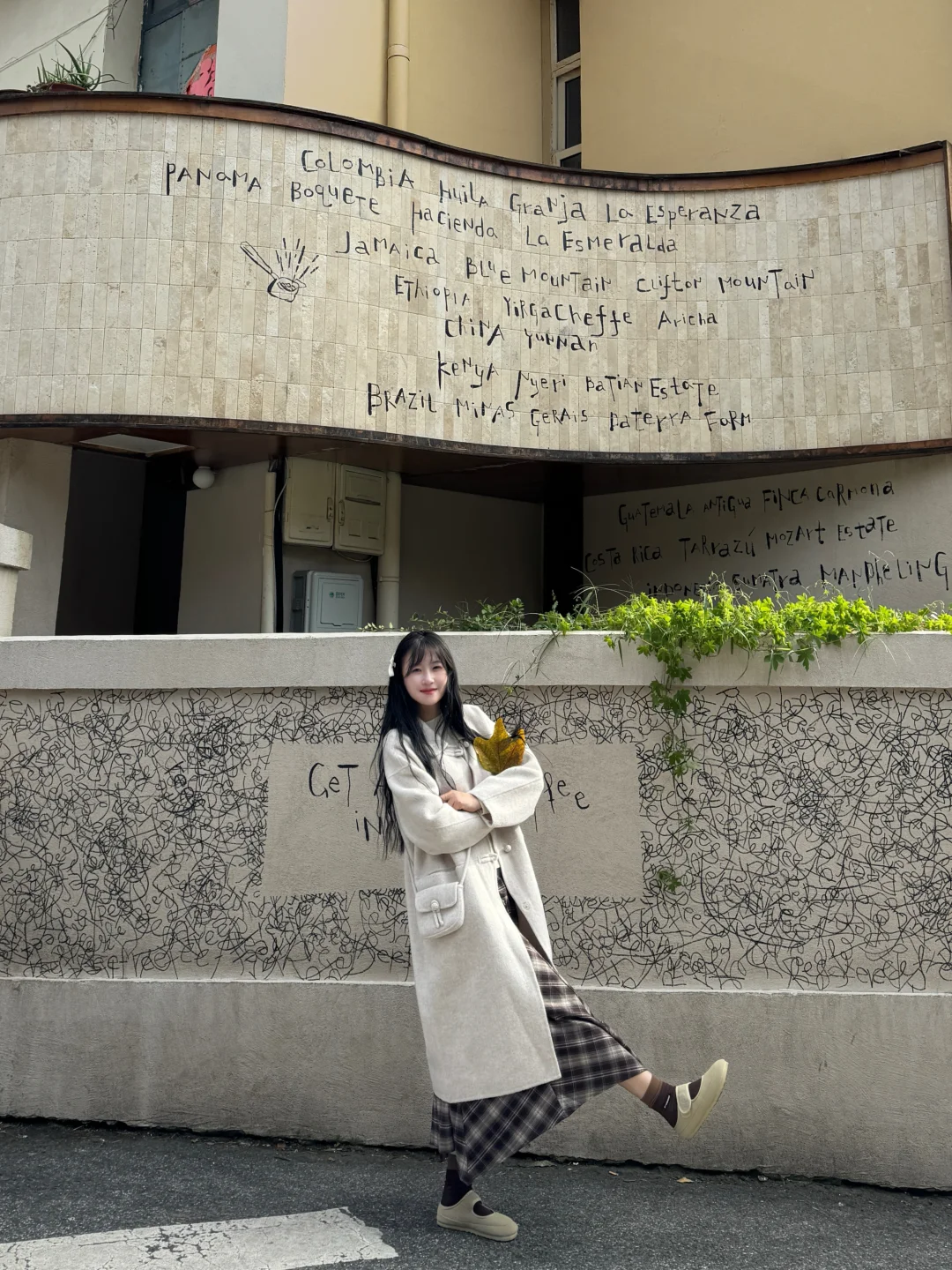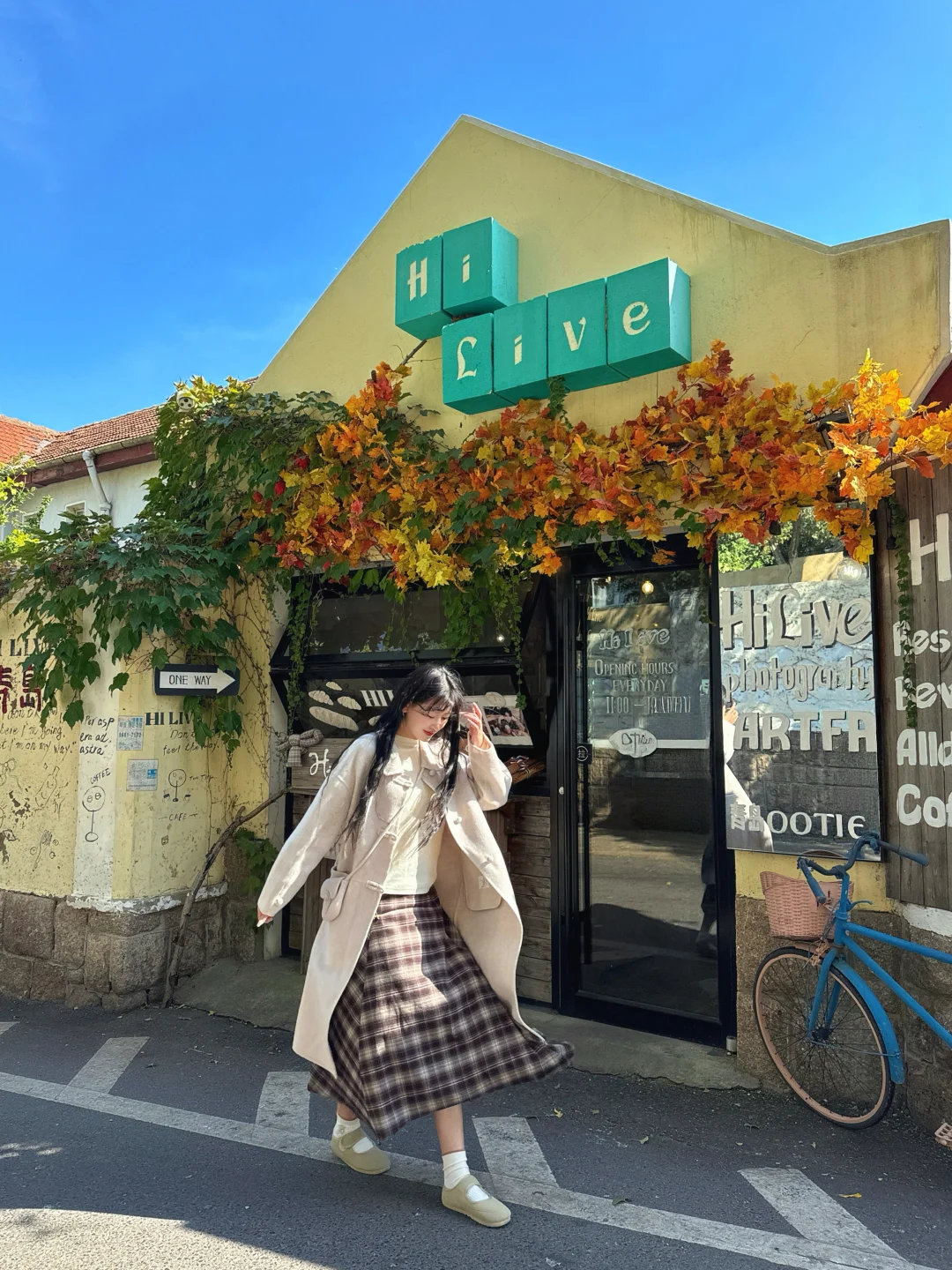 ✅搭配:呢大衣+格子长裙+勃肯鞋 氛围感拉满