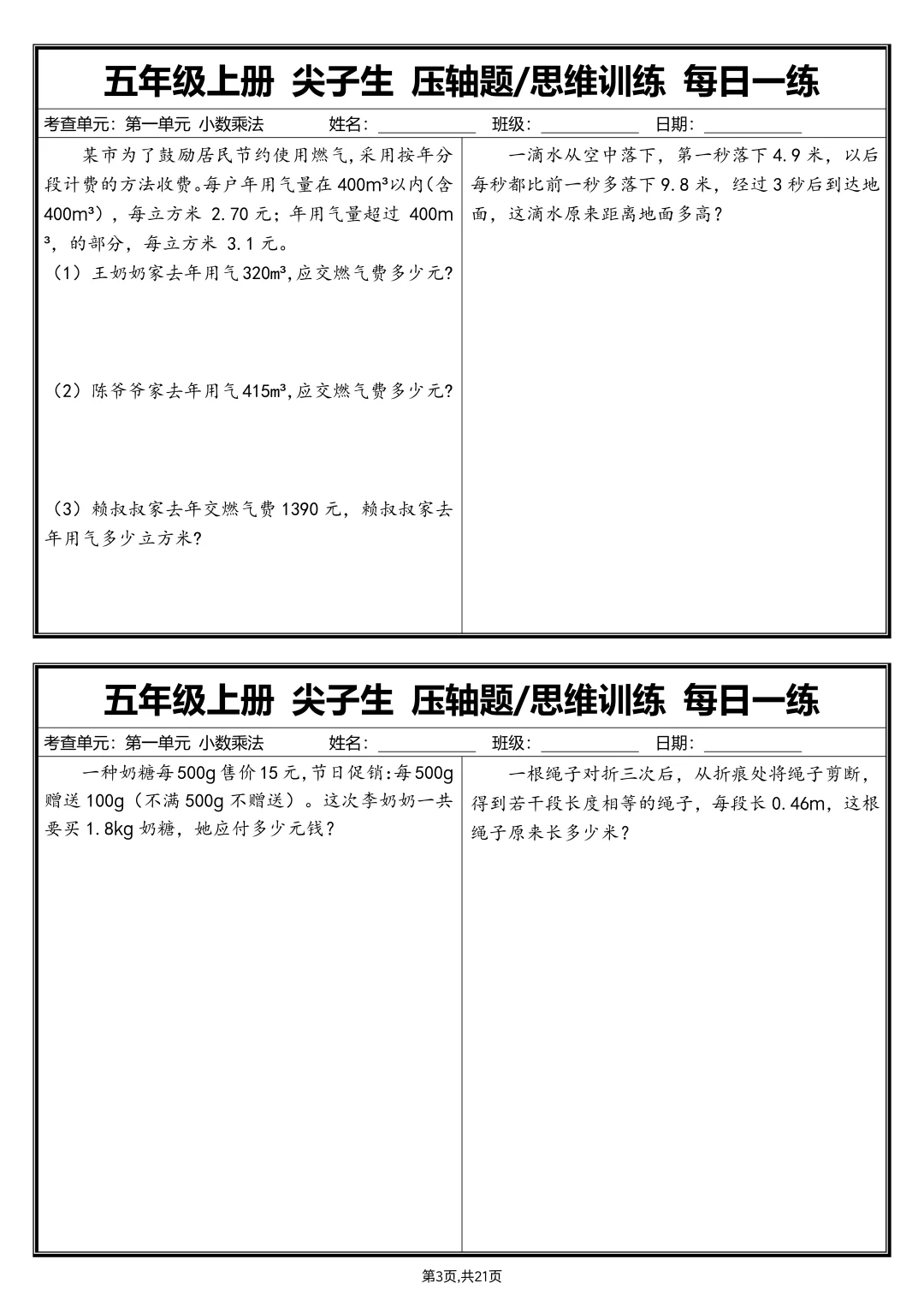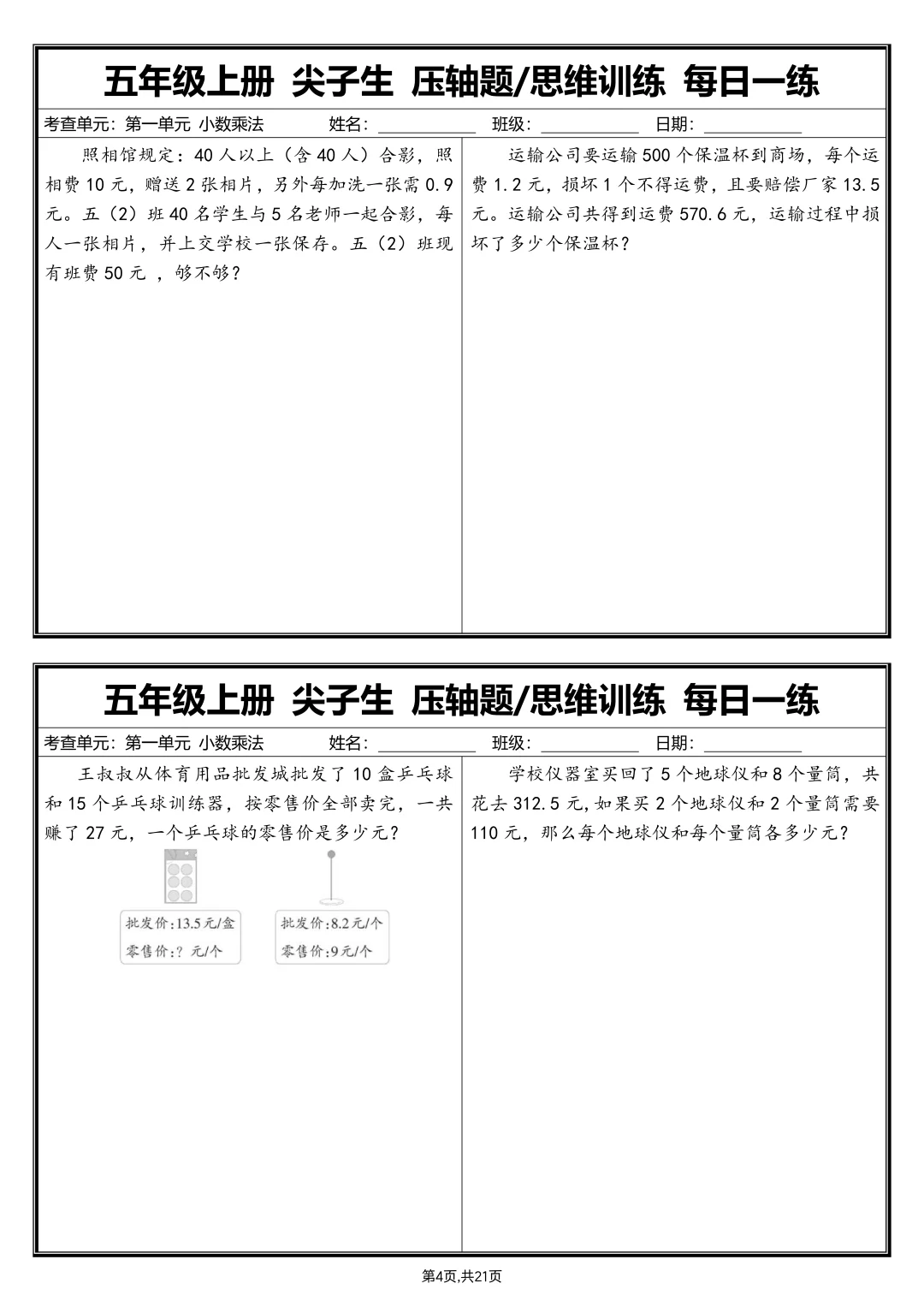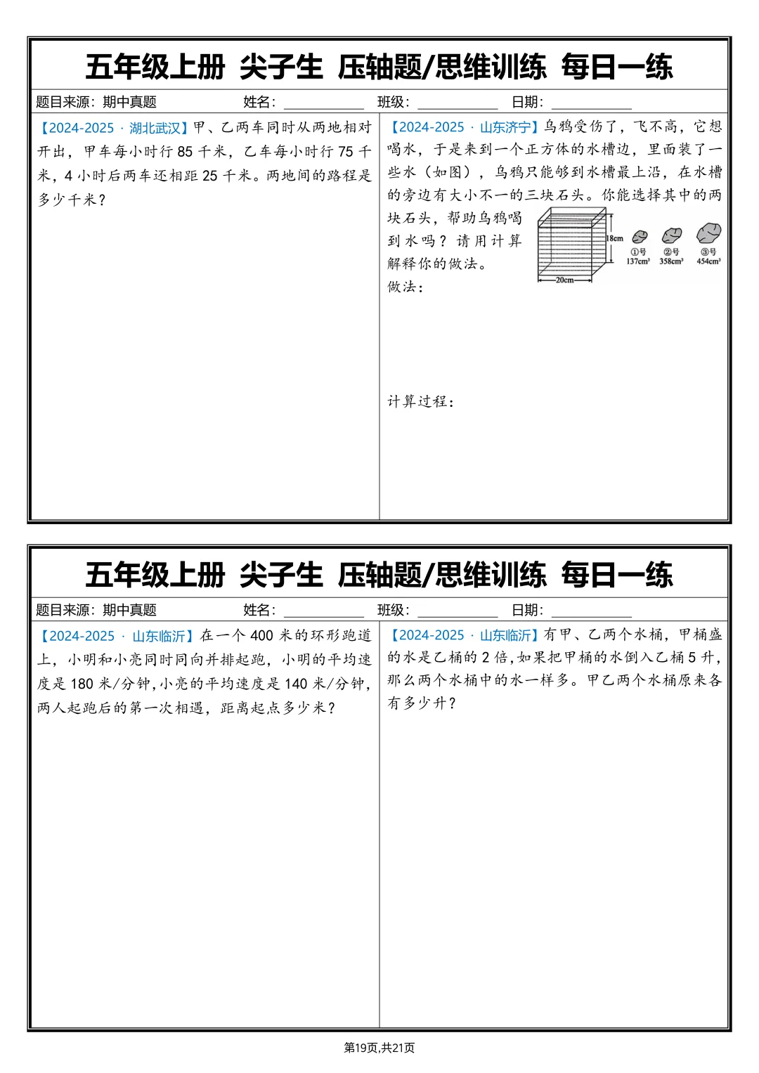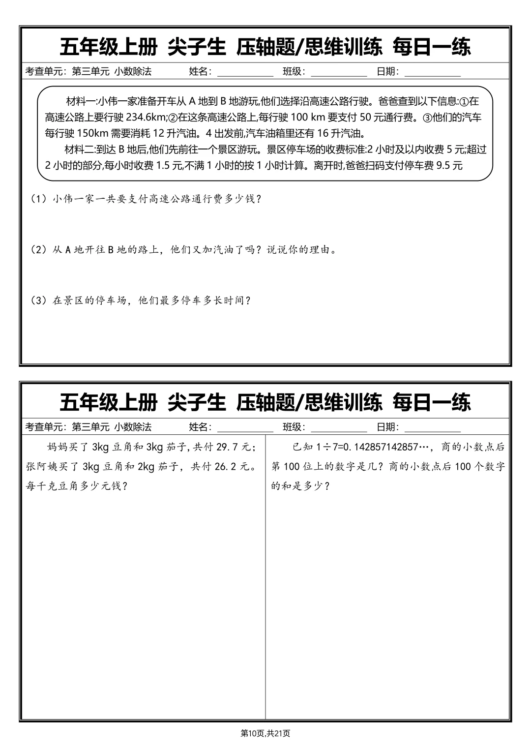 ▪️谁懂啊!为了给娃找五年级上册数学压轴题练习,翻遍了各种平台,要么难度不对要么题太旧,真是急得上火😭