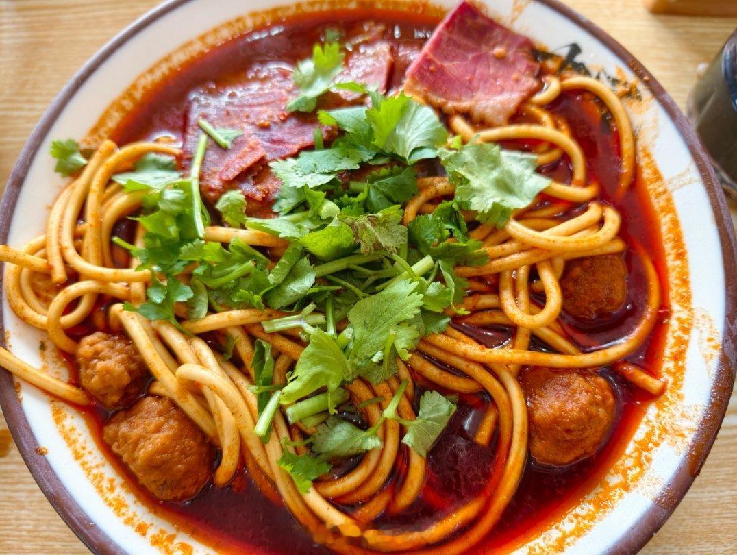 打卡一家当地挺火的牛肉丸子面店一份凉菜,三碗面加点烧烤粥,爆米花,冰激凌都免费8