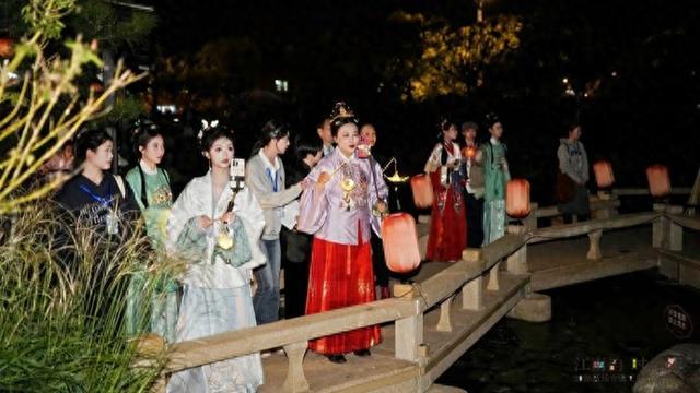 此外,现场还有丰富多彩的游园活动,古风市集、乌篷船戏曲、古镇老街乐队、放河灯祈福等互动体验。