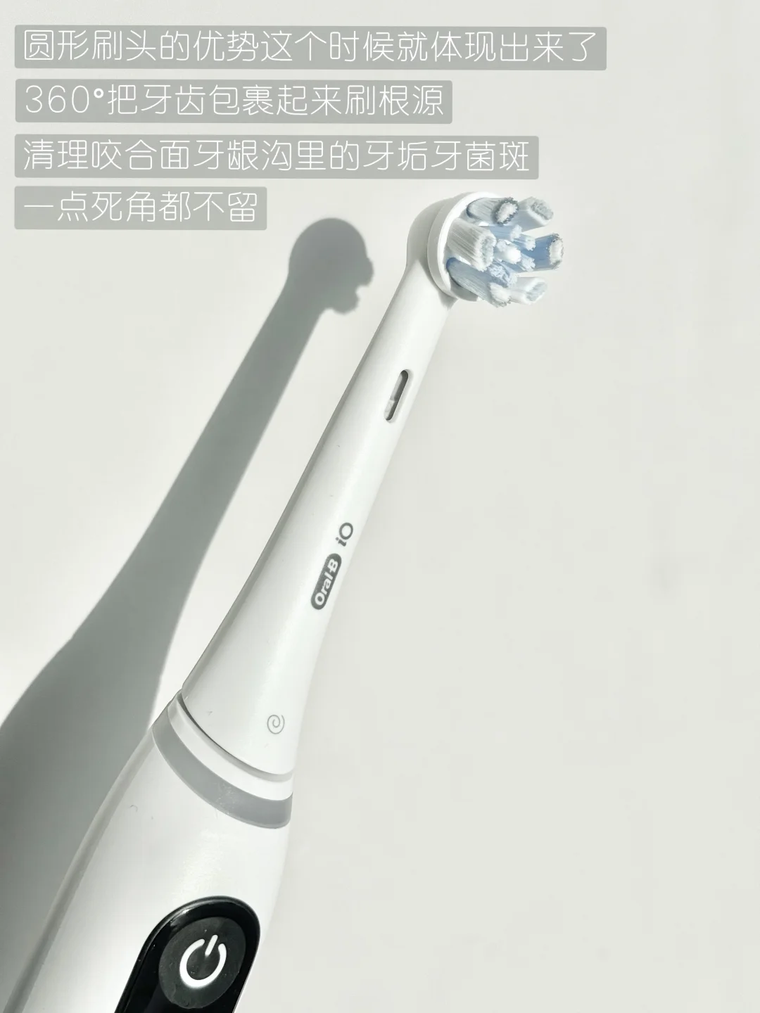以欧乐B电动牙刷为例,它的圆形刷头能精准定位包裹每颗牙齿,将清洁力集中作用于窝沟深处,实现360°清洁,有效清除手动刷牙难以触及的牙菌斑。
