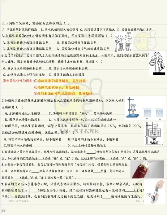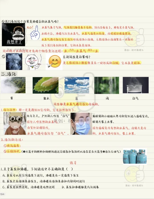 原创 手写笔记 汽化 液化 八上物理 初二上物理