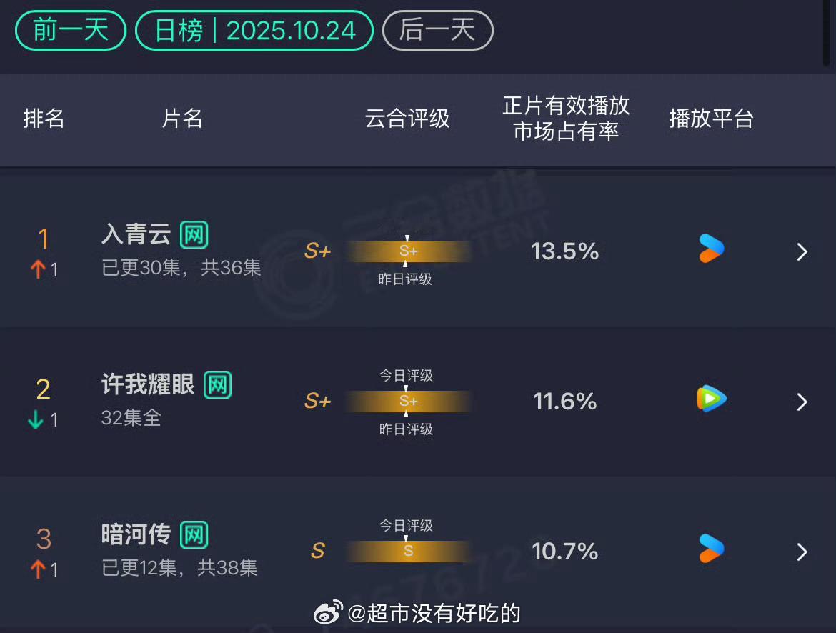 暗河传口碑目前为止龚俊暗河传全方位第一登顶,V榜、德塔文、优酷站内热度全方位TOP1,云合也稳步上升中,暗河传越来越好,一集比一集更好看[干杯]三大男主剧开播首日广