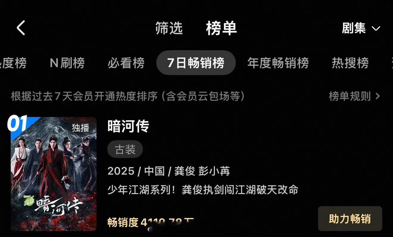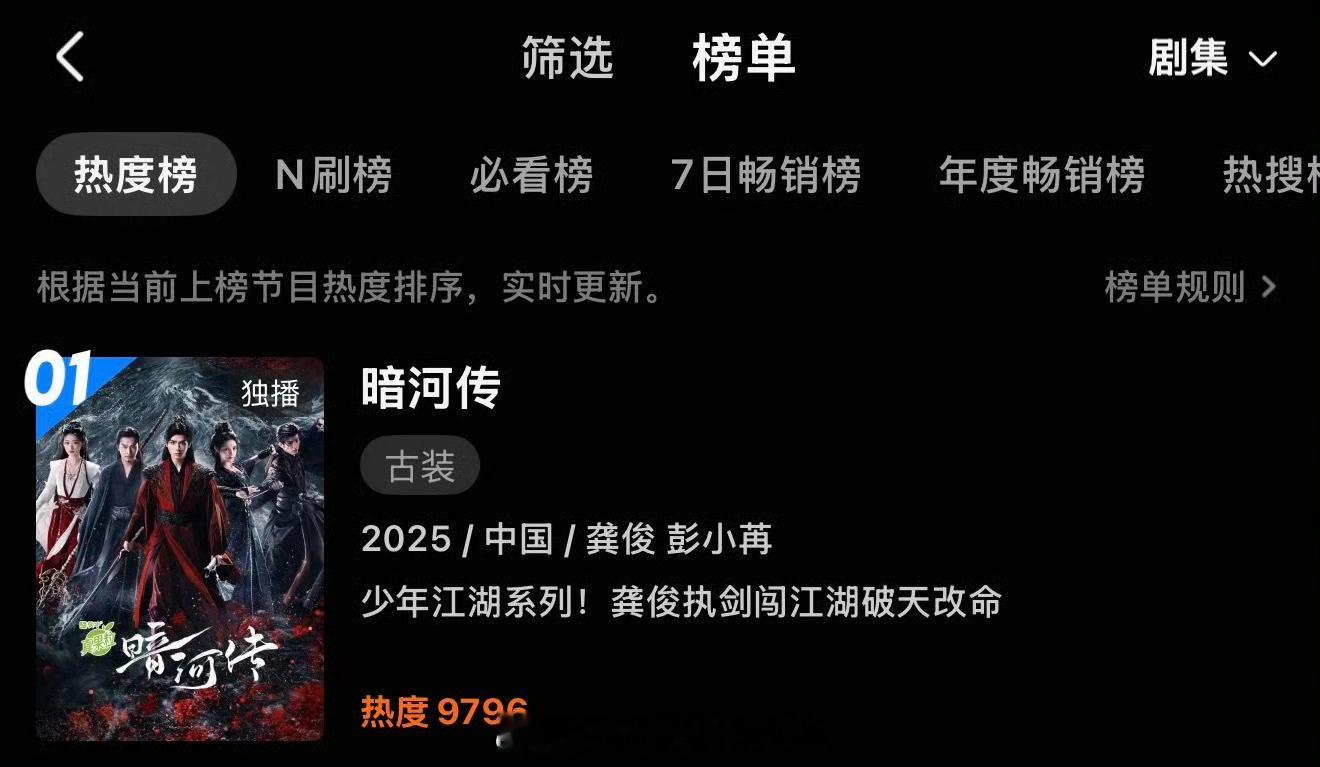 暗河传口碑目前为止龚俊暗河传全方位第一登顶,V榜、德塔文、优酷站内热度全方位TO