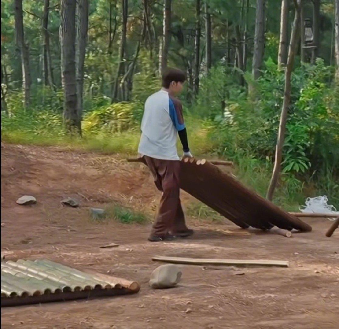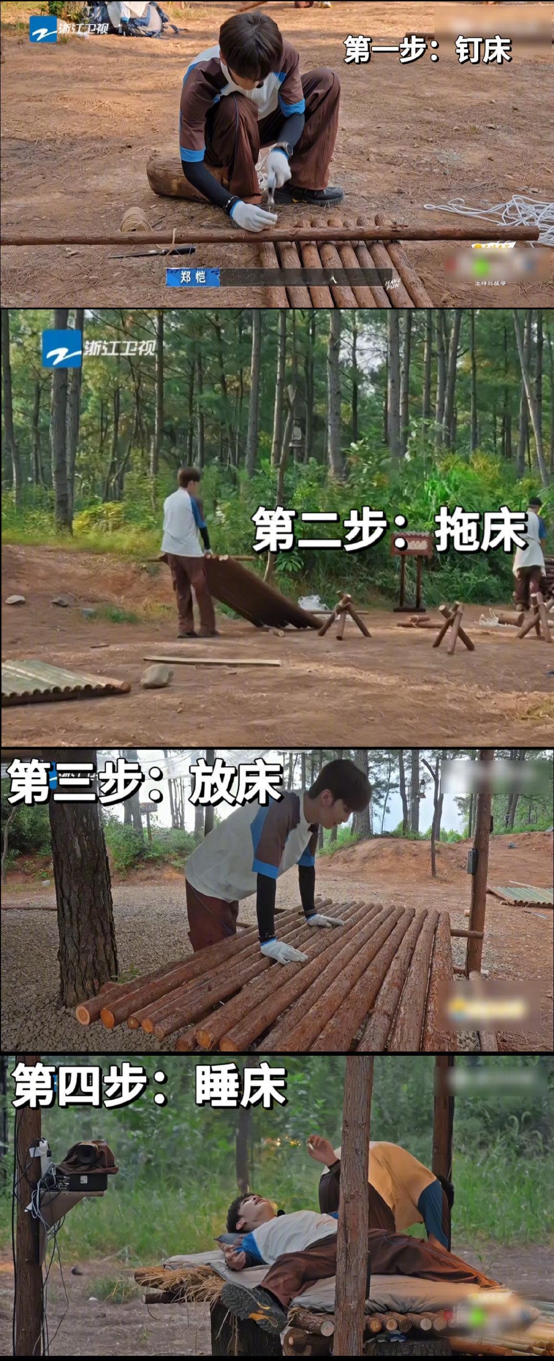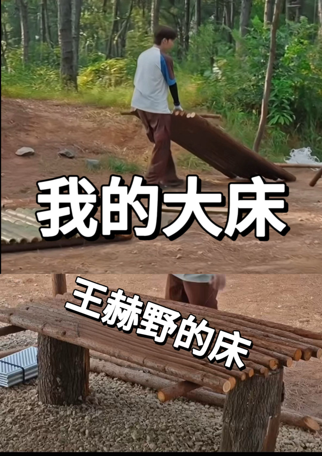这是王赫野的大床没有房 谁被圈粉了!王赫野《嗨放派》动手能力超在线!野外生存自己砍木头做床,哼哧哼哧忙半天,木头大床超有成就感,“有床无房”太搞笑!