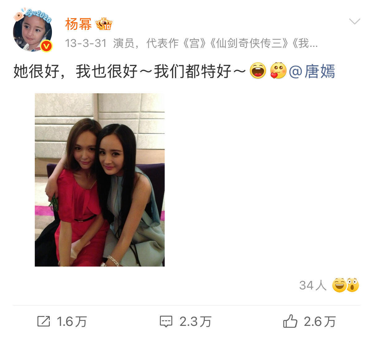 杨幂和唐嫣 祝福断更于2018年 到底是怎样的过往让曾经那么要好的朋友老死不相往来