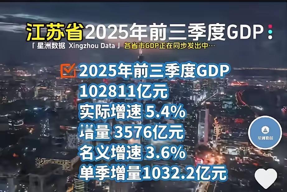 江苏省三季度GDP出炉102811亿,增量3576亿。江苏在山东于浙江和上海