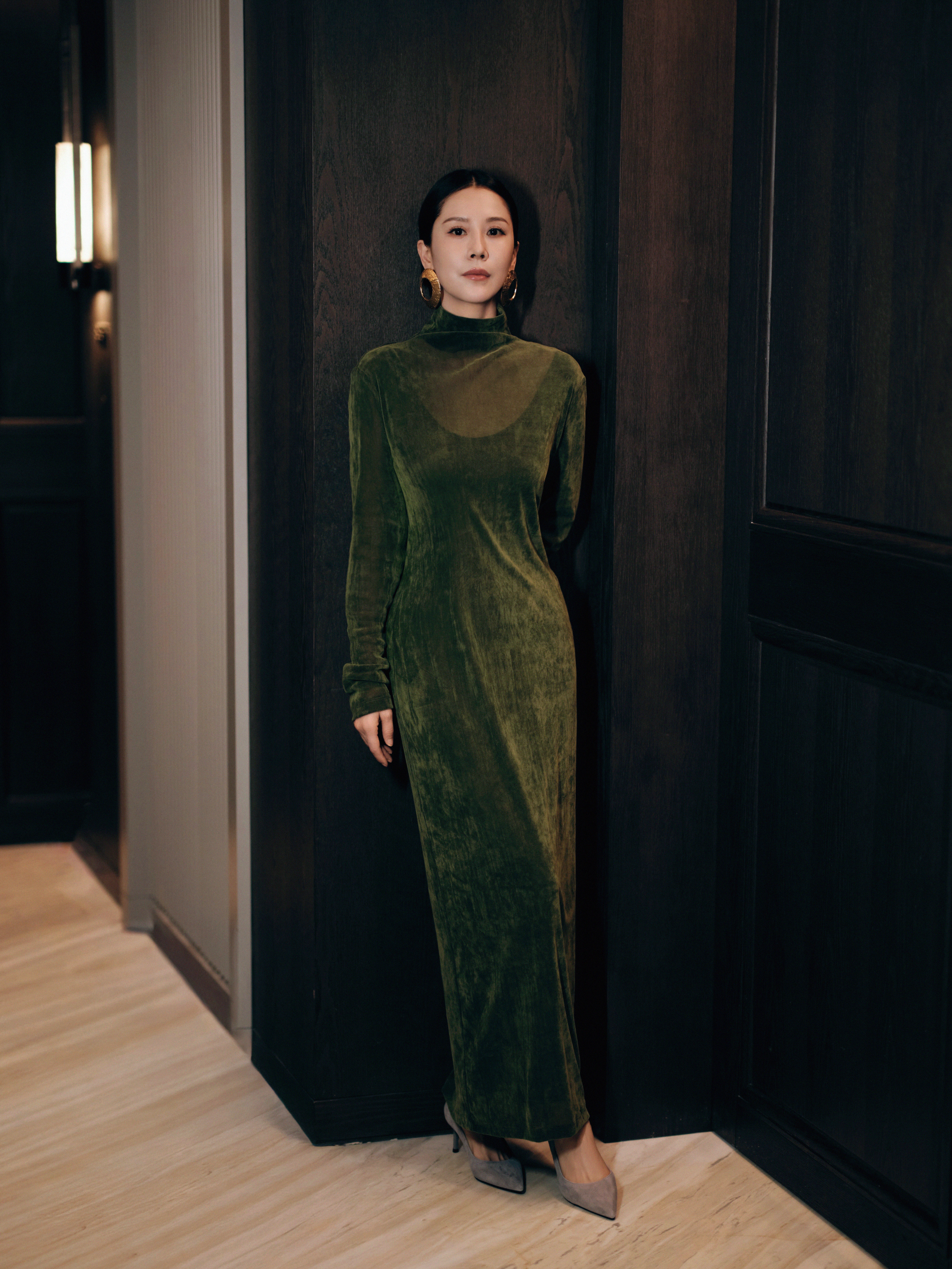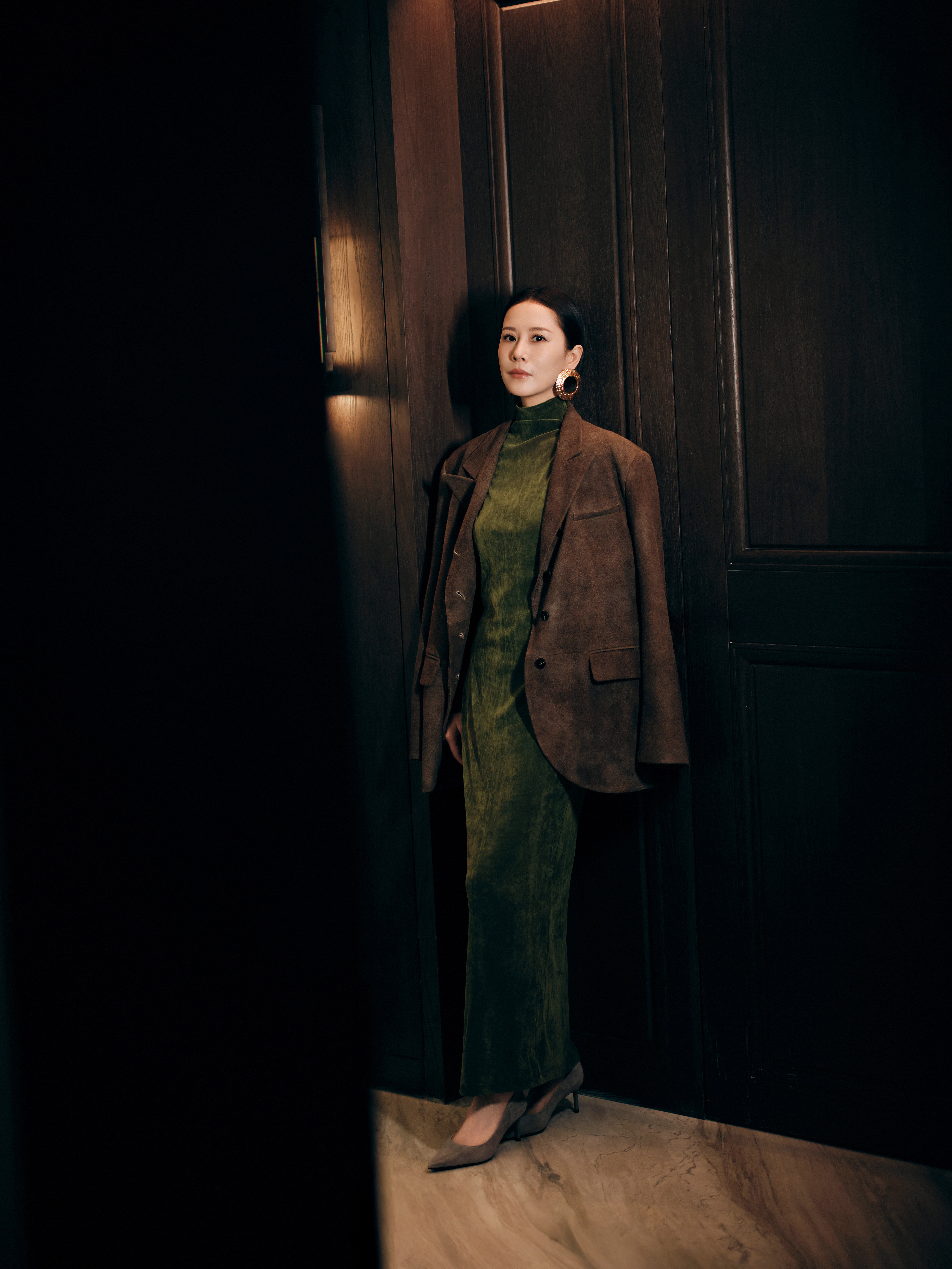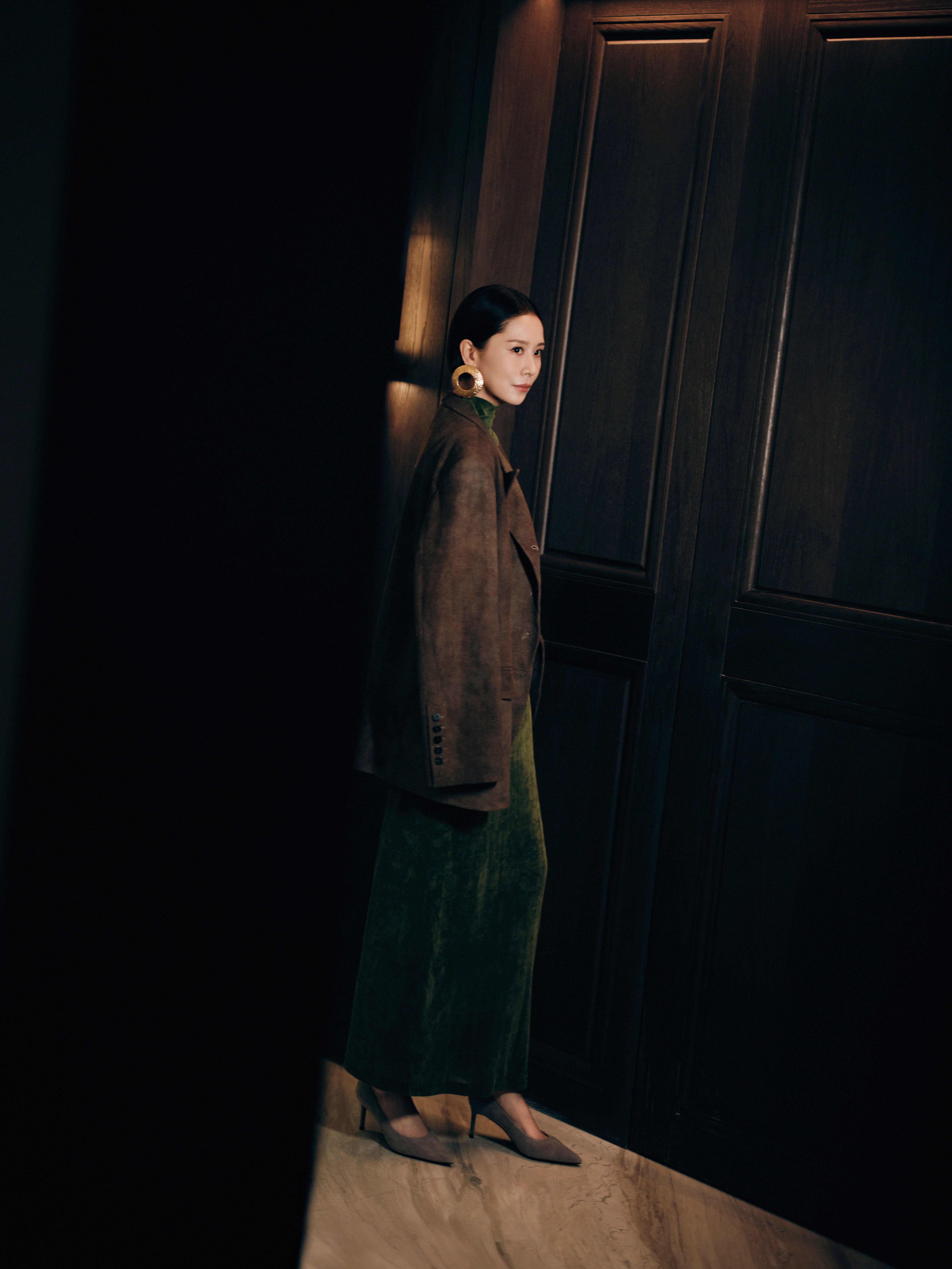 海清一袭复古棕麂皮西装搭配墨绿色丝绒长裙亮相ZHUCHONGYUN 活动现场,沉静神秘的墨绿质感呈现温柔知性的复古风格,衬托出海清从容干练的气场,撞色穿搭的优雅典范,整个高级感拉满,姐这状态也太顶了!
