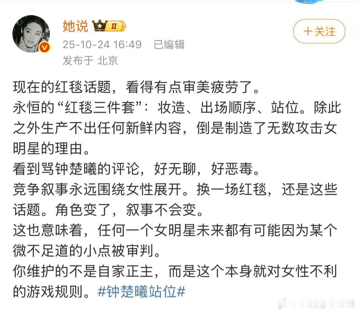 钟楚曦现状 够了我说够了 连钟楚曦本人还有工作室评论区也不放过 对着视频里所有人逐帧解读就是为了审判钟楚曦 连出席活动的人都出来说是没有定位置的 还喊着说封杀 被逮着审判两天….能不能停止这样恶意的审判…