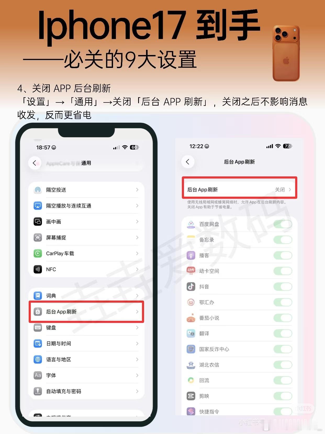 iPhone17关闭9个烦人设置教程入手了iPhone17了,但是拍照看着黄,手机耗电大,那是因为这些隐藏设置没有关闭。