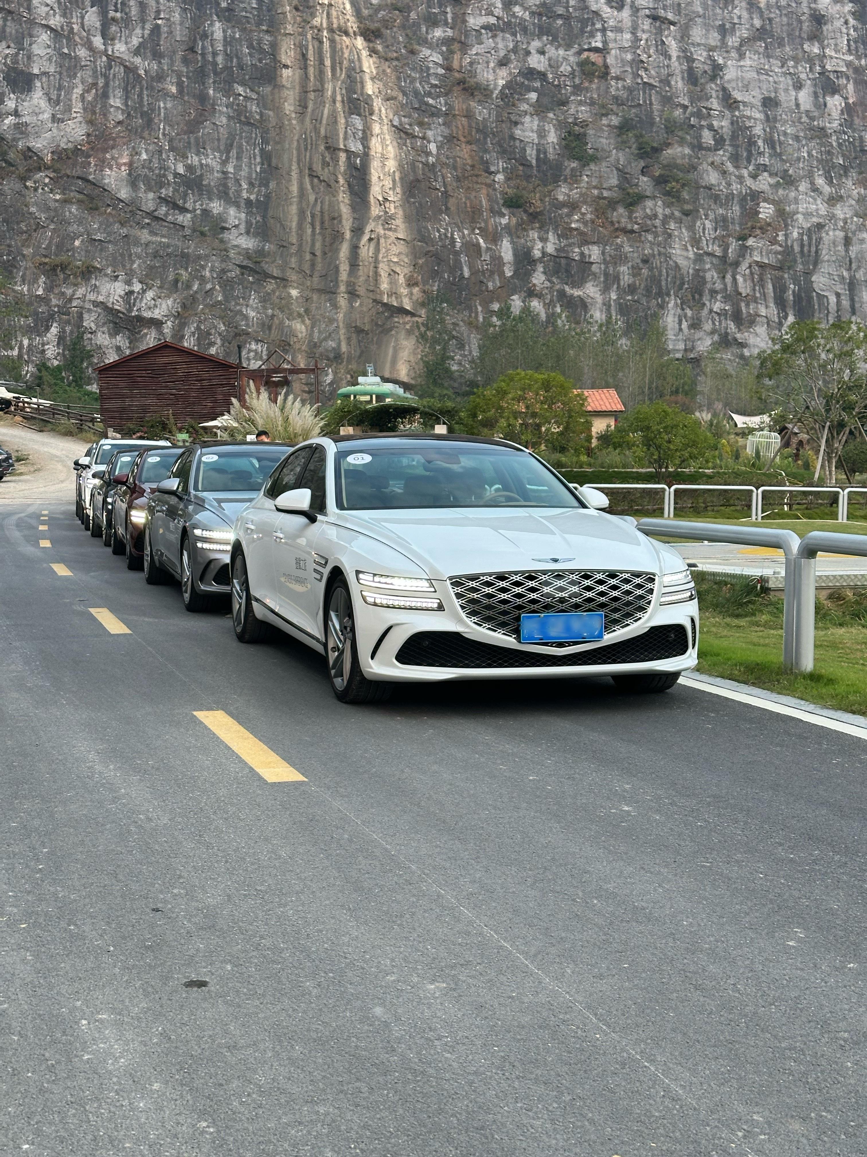 捷尼赛思偶遇捷尼赛思车队!这个车还挺好看的!小米的车尾和捷尼赛思的哪个更好看!
