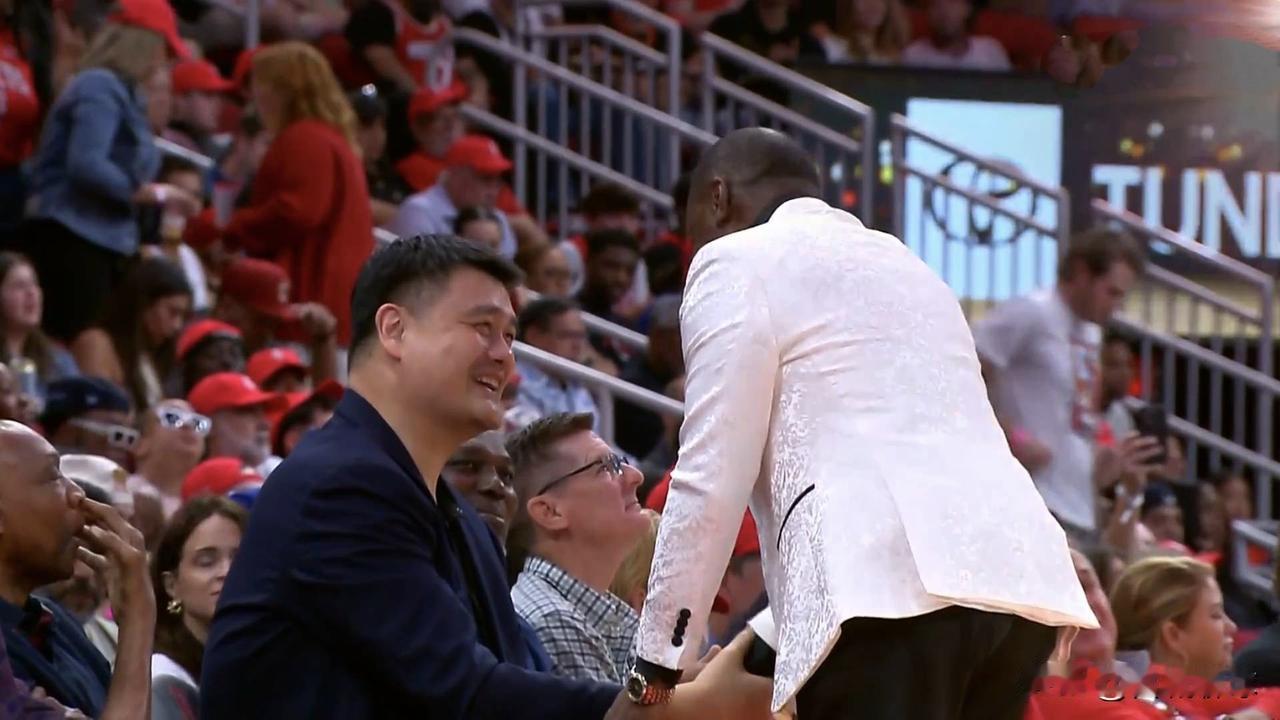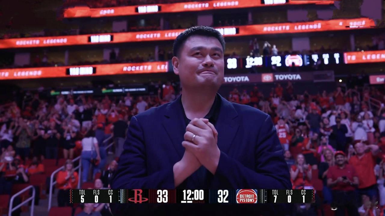 姚明前往丰田中心观战火箭和活塞的比赛[比心]