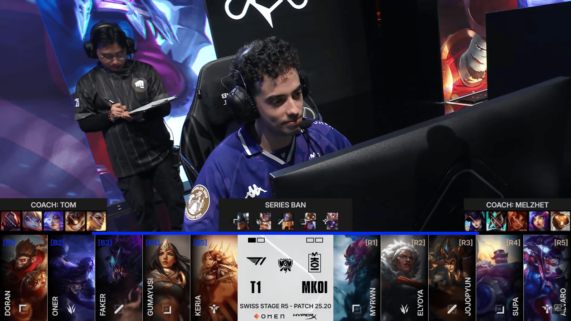 虎扑10月25日讯T1对阵MKOI次局阵容确定,具体如下: