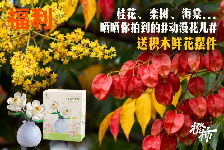 桂花、栾树、海棠...晒晒你拍到的#动漫花儿#,送积木鲜花摆件