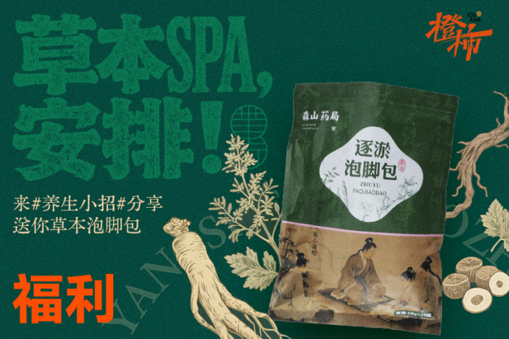 草本SPA,安排!来橙友圈分享,送你草本泡脚包,从脚暖到心