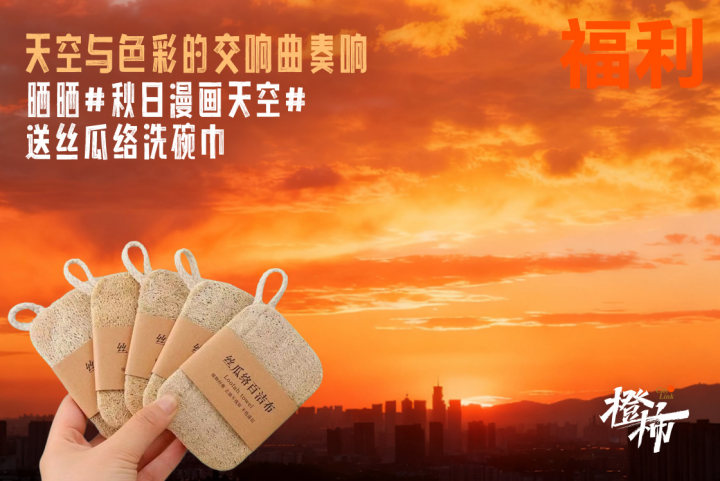 天空与色彩的交响曲奏响,晒晒#秋日漫画天空#,送10组丝瓜络洗碗巾