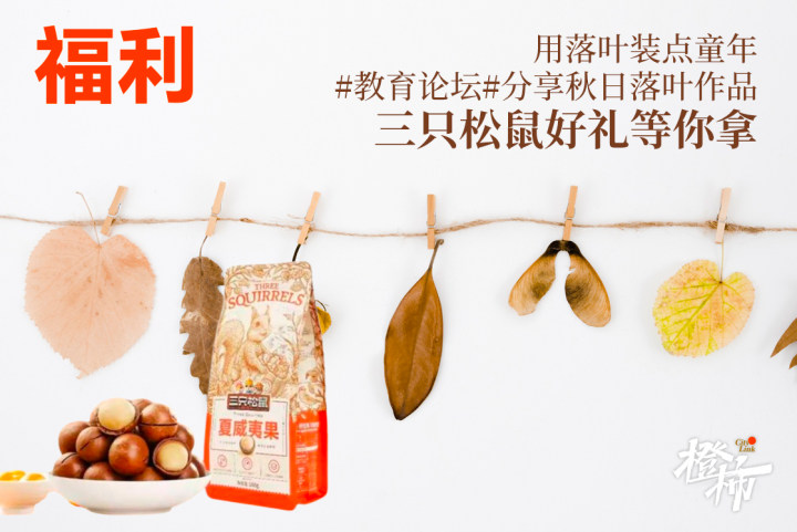 活动参与方式:带上#落叶#标签,来橙友圈#教育论坛#话题下发帖,分享和孩子一起、你为孩子做的深秋落叶的各种DIY作品,也可以是树叶主题的一幅画、在树叶上作画等等。