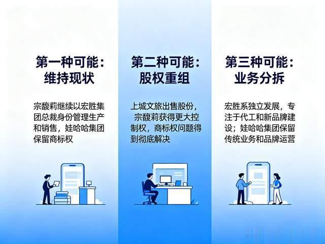 第二种可能是股权重组。上城文旅出售股份,宗馥莉获得更大控制权,商标权问题得到彻底解决。这需要各方在价格和条件上达成一致,难度较大。