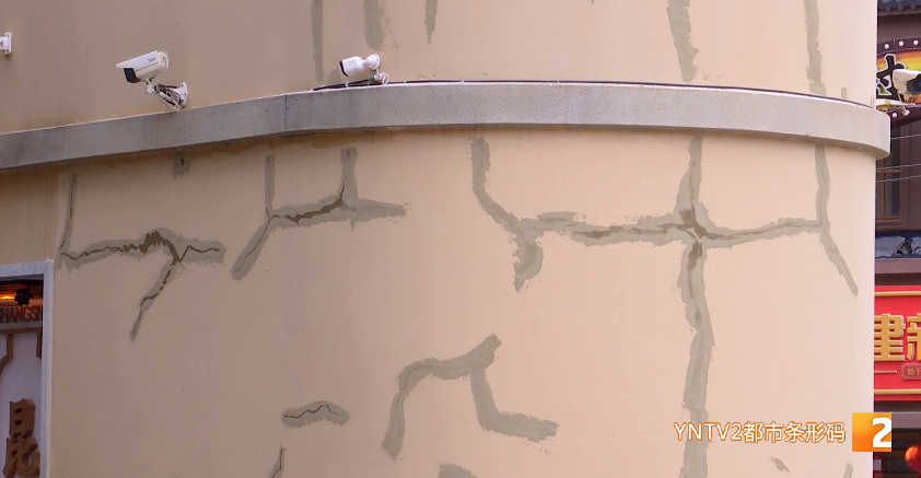 最近,有市民反映,位于昆明老街抗战胜利堂前的“酒杯楼”墙体上,出现了不少又长又粗的裂缝。